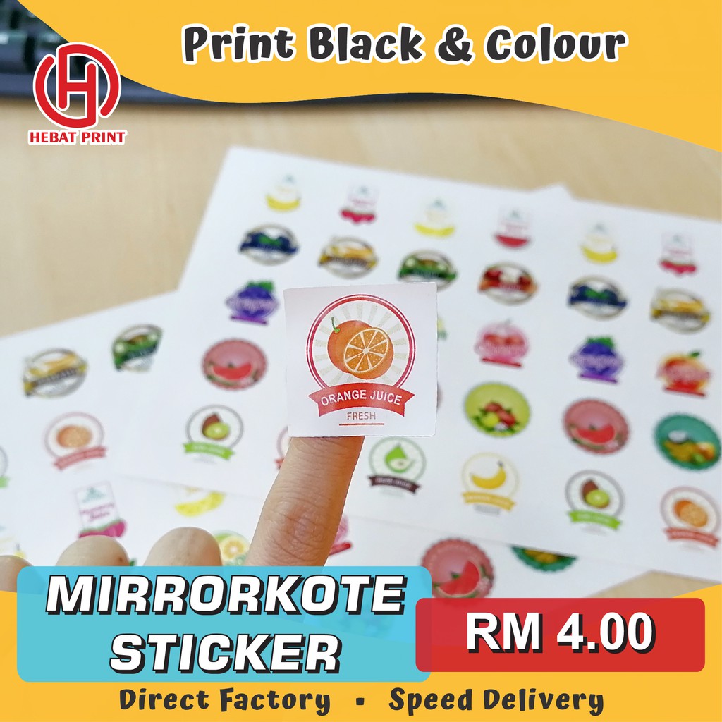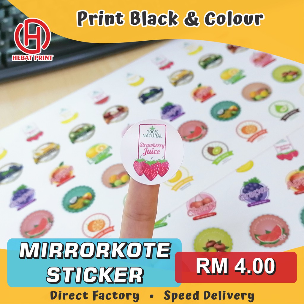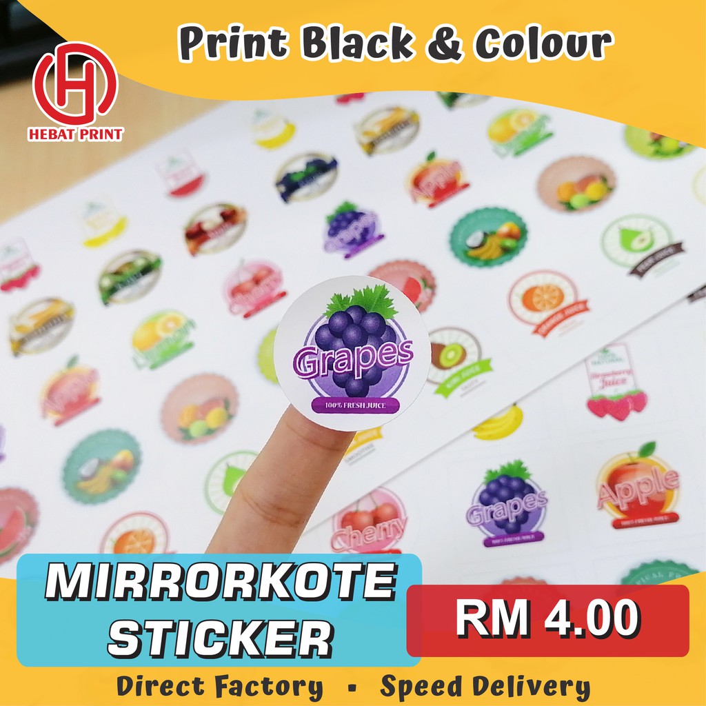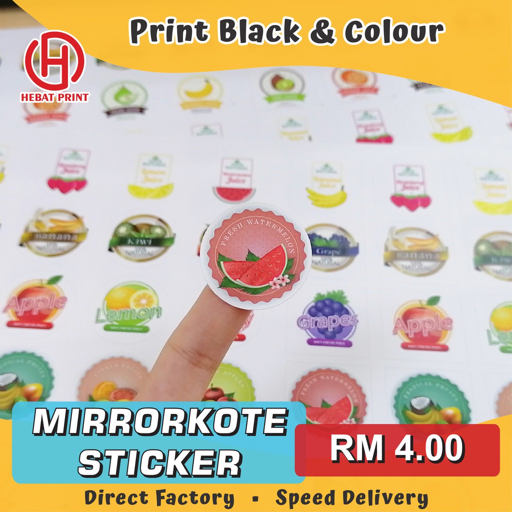 Customize Mirrorkote Sticker / Print Black and Colour / Print & Cut