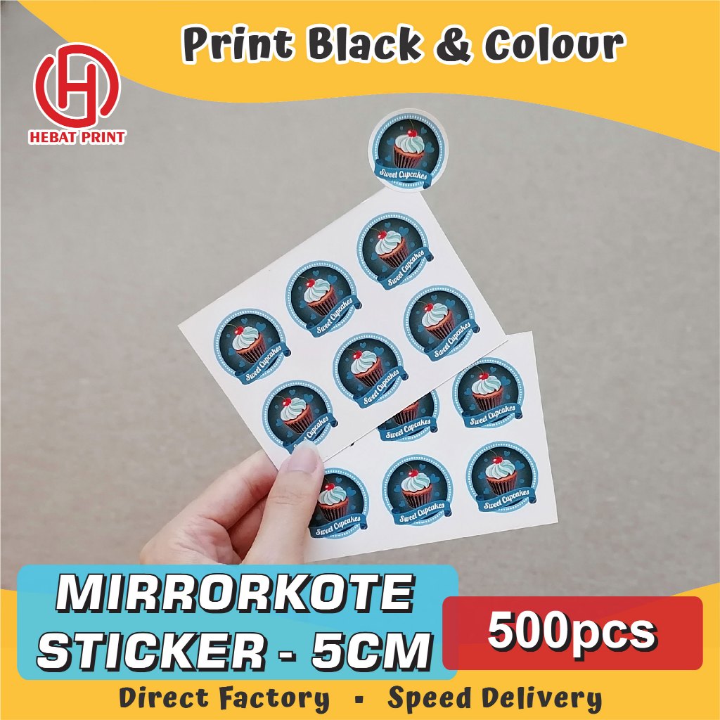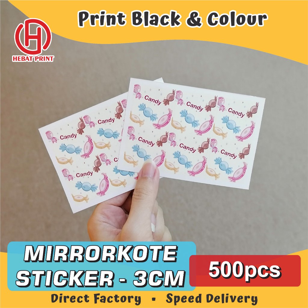 Customize Mirrorkote Sticker / Print Black and Colour / Print & Cut 500pcs & 1000pcs / 3cm-6cm