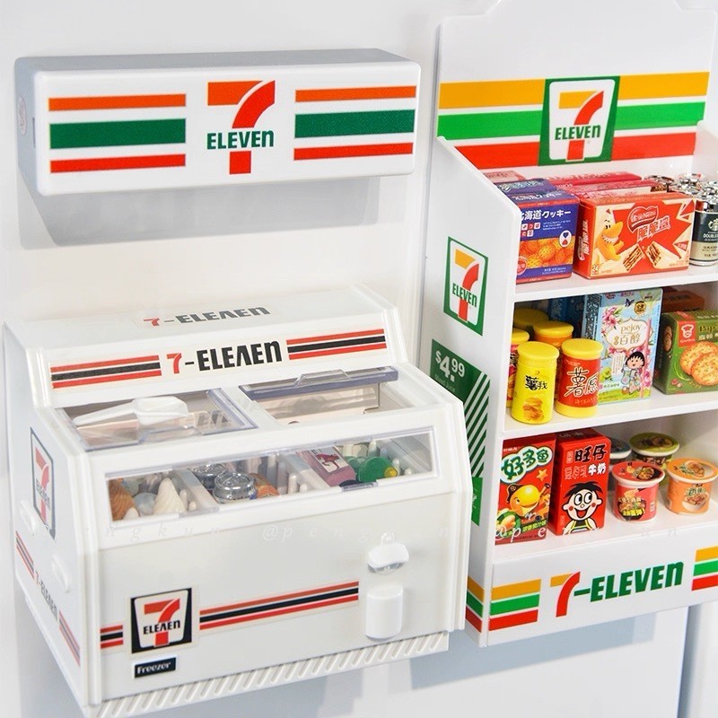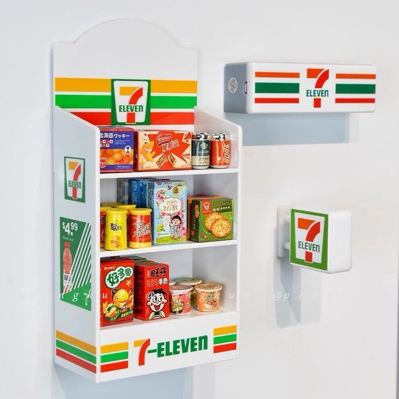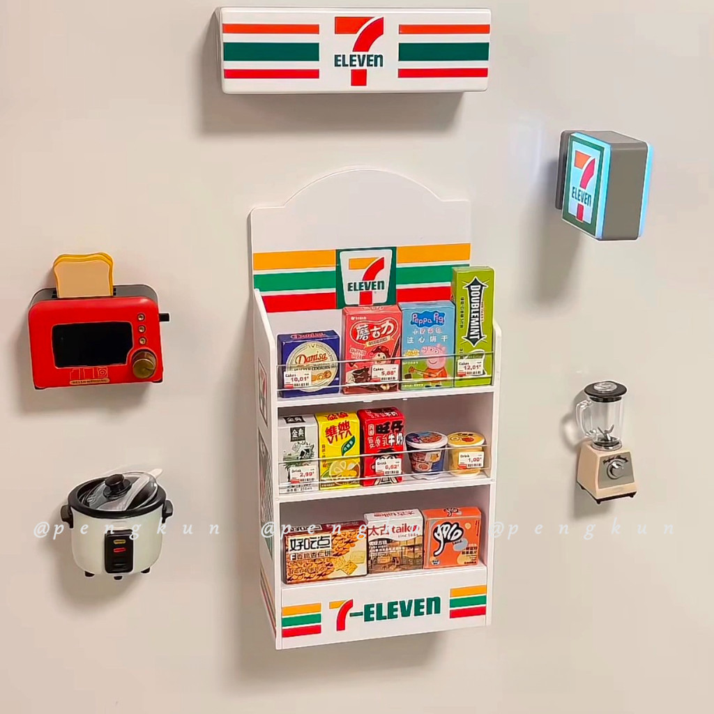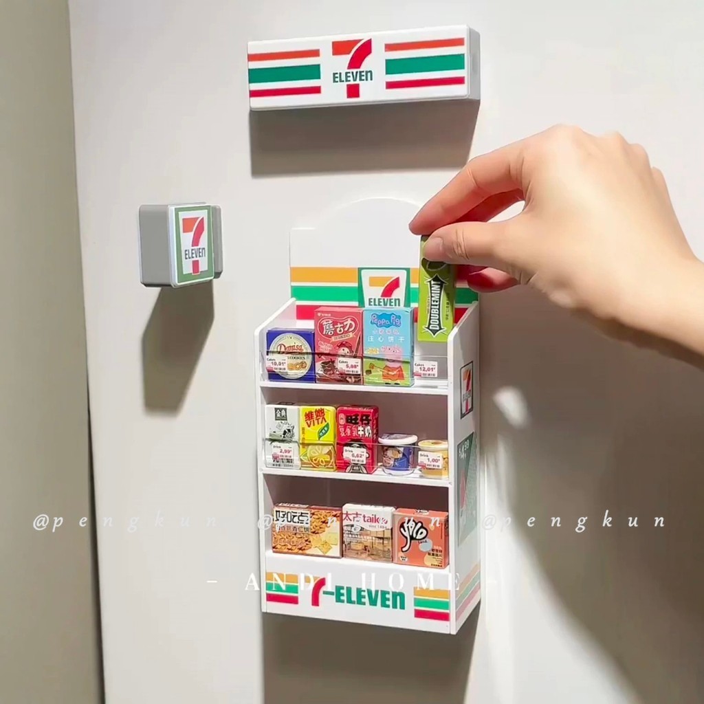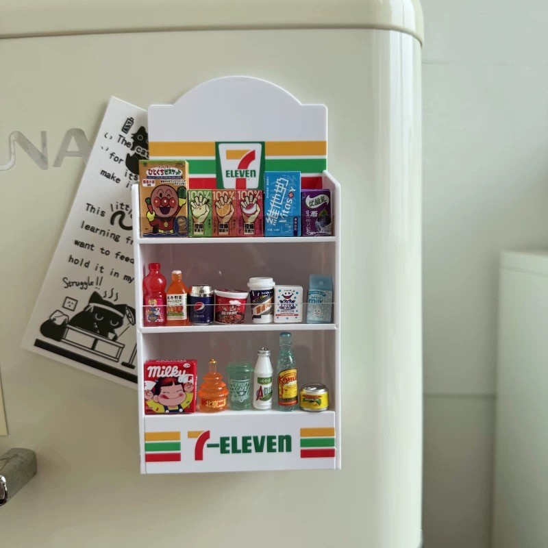 711 Convenience Store Refrigerator Stickers Simulation Mini Supermarket Shelf Small Shelf Magnetic Food Toy Model Decoration Play House Toys