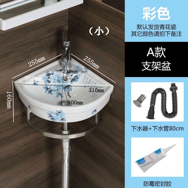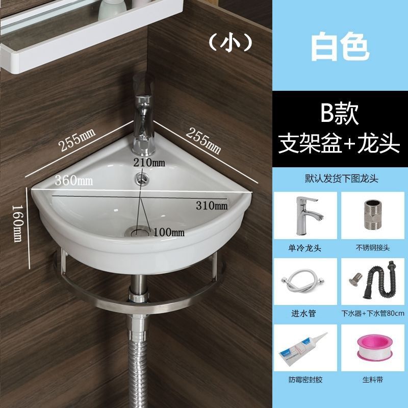 Small bathroom wash basin triangle basin balcony mini hanging basin stainless steel bracket basin basin basin bathroom hanging wall corner basin KRBE