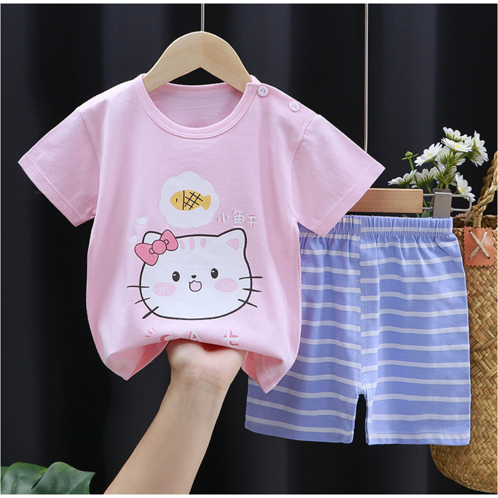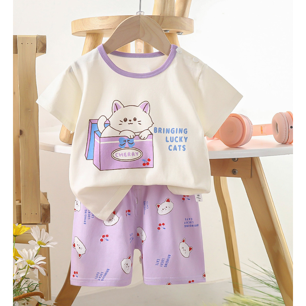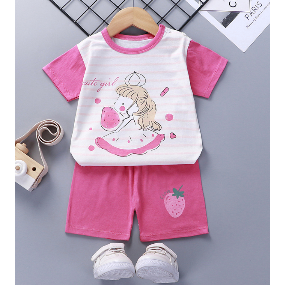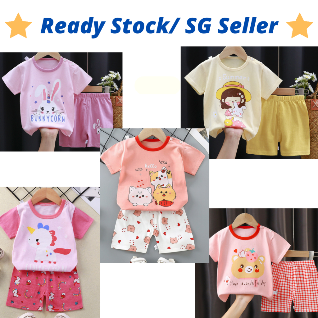 (SG Local Stock) 100% Cotton Girl Home and Outdoor wear short sleeve Cotton 2 Pics Set