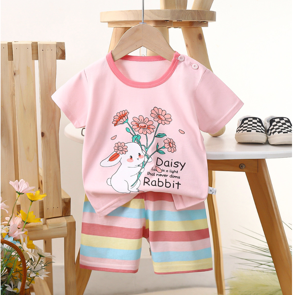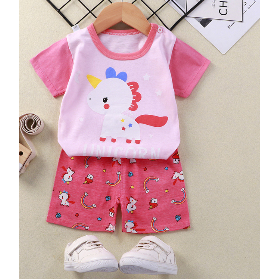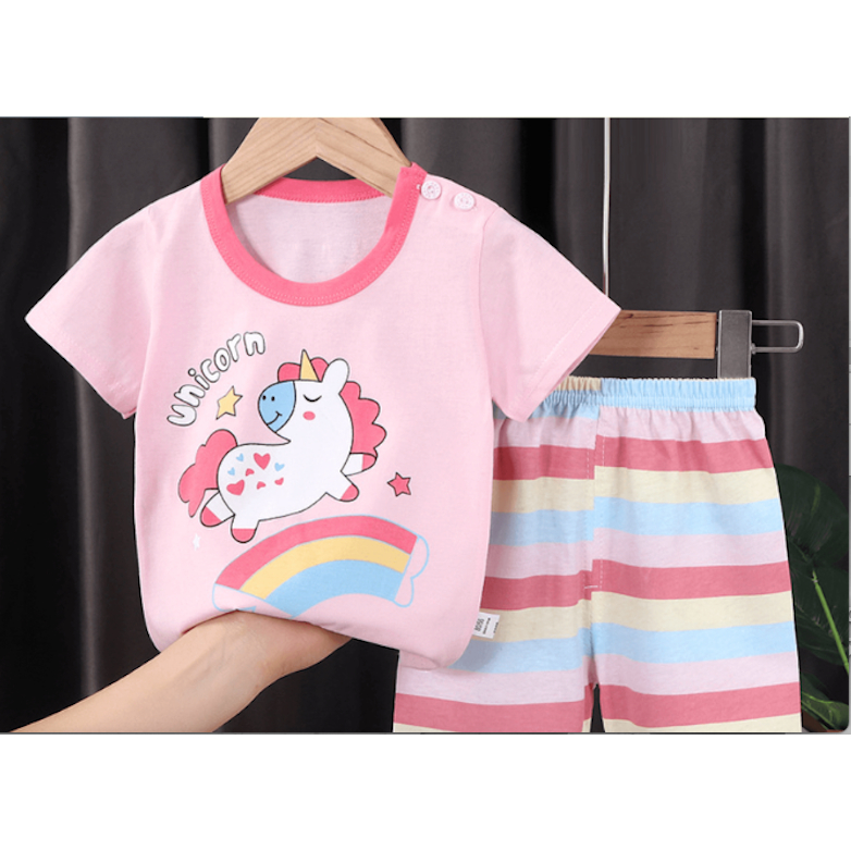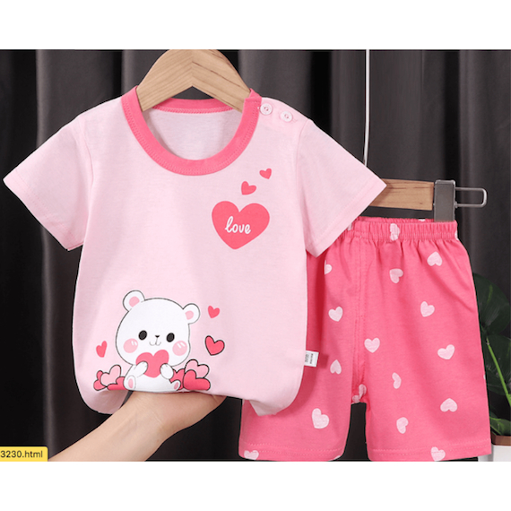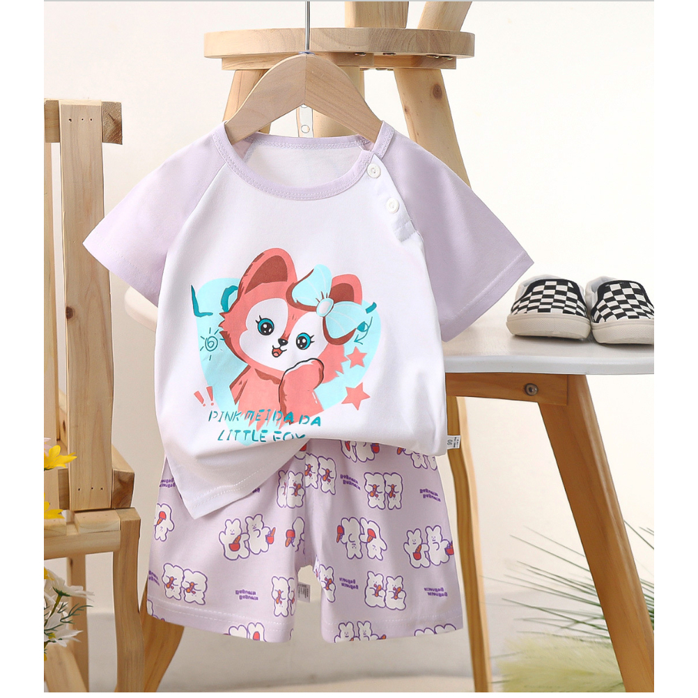 (SG Local Stock) 100% Cotton Girl Home and Outdoor wear short sleeve Cotton 2 Pics Set