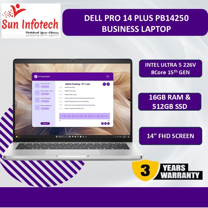 DELL PRO 14 PLUS PB14250 BUSINESS LAPTOP (NEW 15th GEN INTEL ULTRA 5 226V /16GB RAM /512GB /14" FHD/ WIN11-PRO)- 3 year