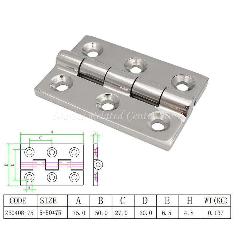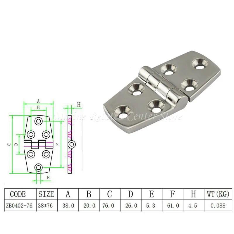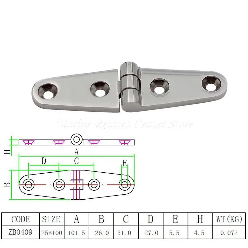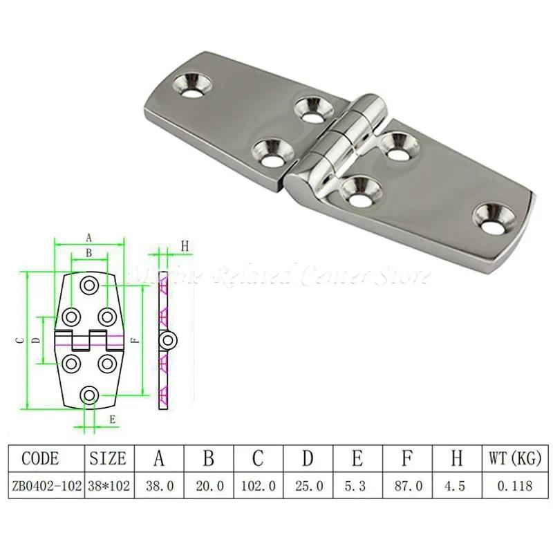 Stainless Steel 316 / 304 Cast Door Strap Hinge Flat Hinge T Hinge With 4 / 6 Holes 76mm 102mm 152mm Marine Hinges Boat Hardware
