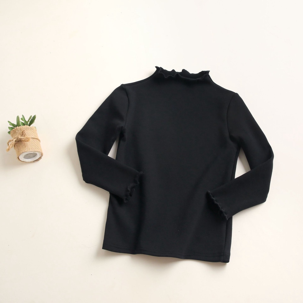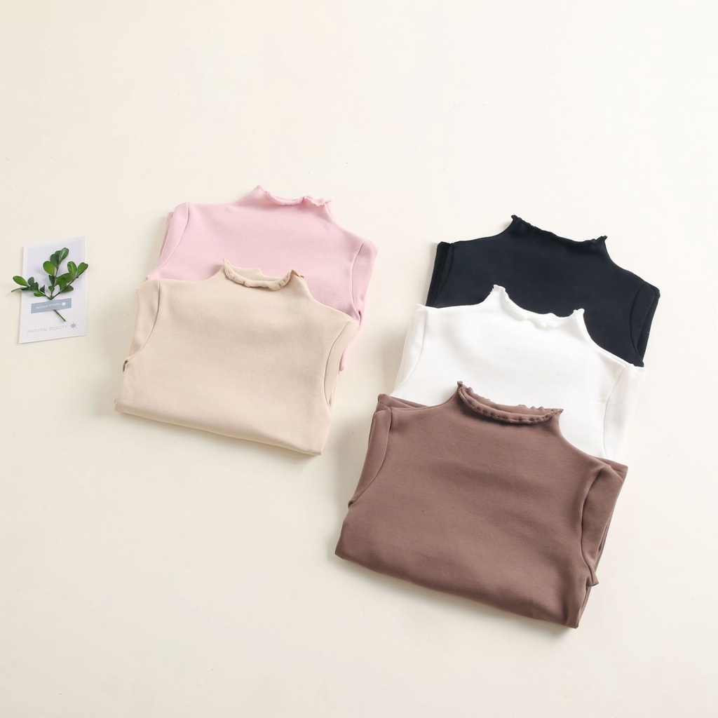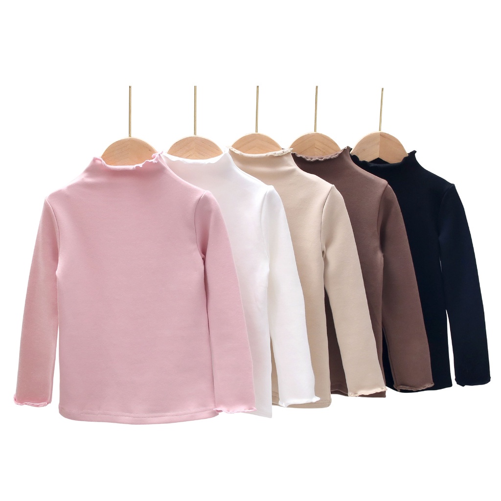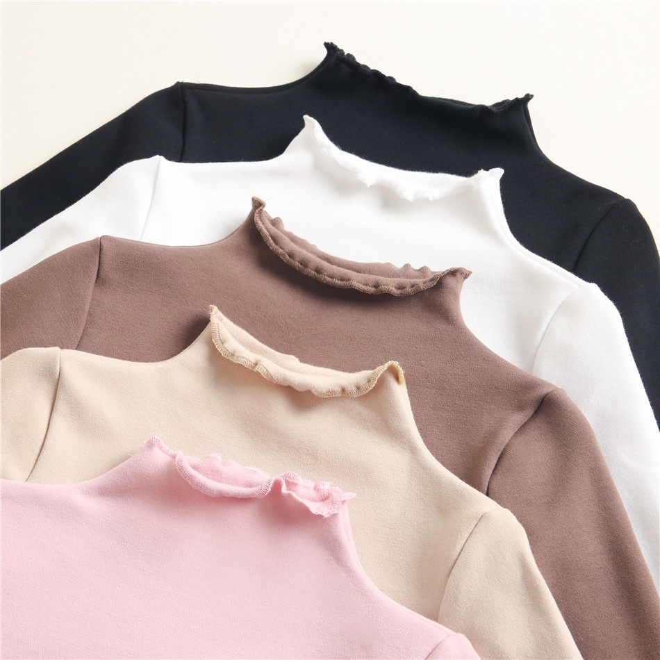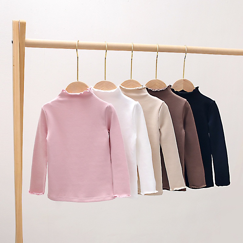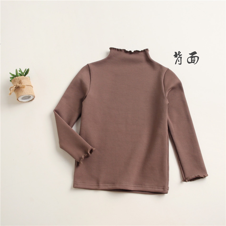 Girls' Bottoming Shirt Autumn Winter Kids Solid Color Fleece Tops
