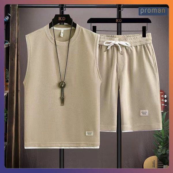 Honeycomb Cotton Men's Home Wear Set, Genuine Men's Sports Set with Embroidered Solid N.Y BO09 - PROMAN