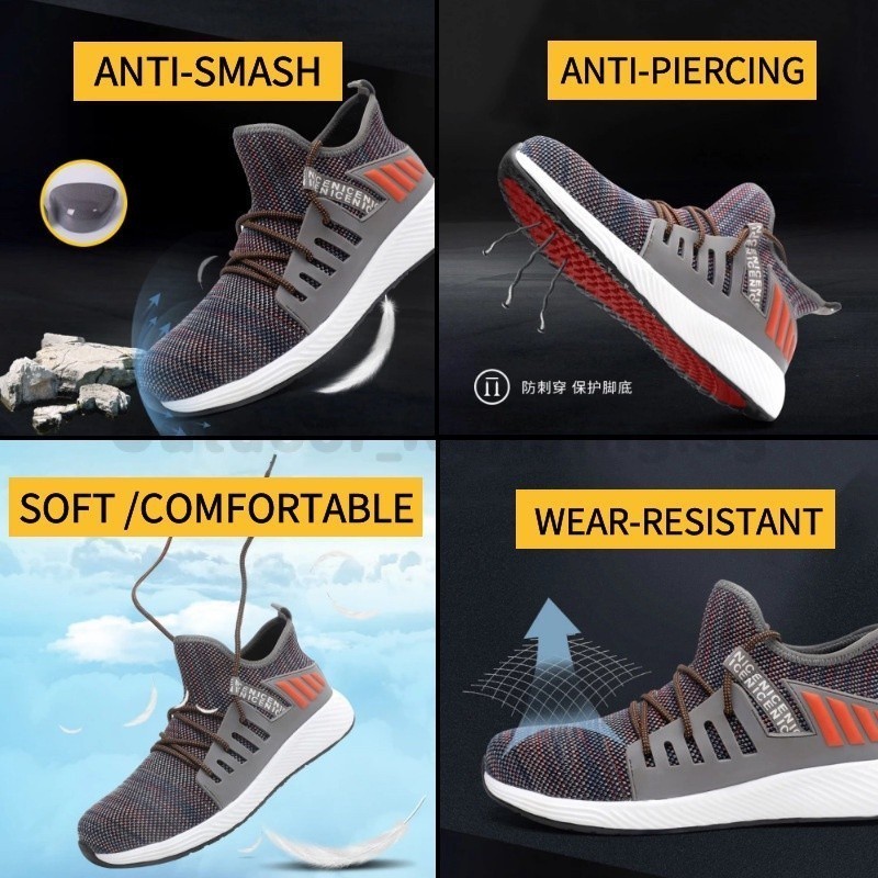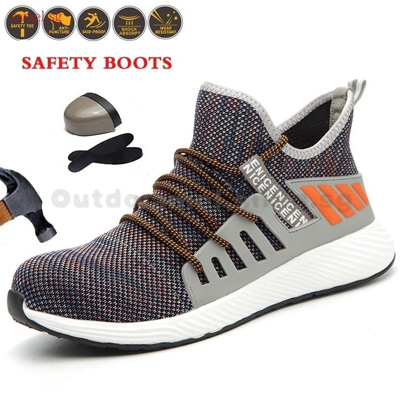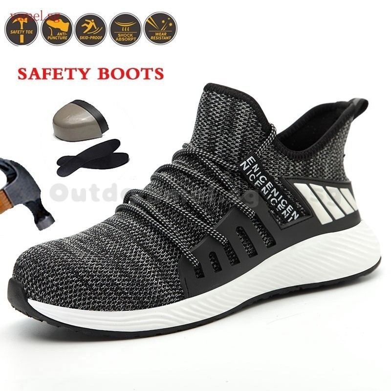 Ultra-light Safety Shoes Steel Toe Shoes Breathable Welder Steel Toe Cap Camouflage Flying Knit Work Shoes Anti-smashing Work Shoes Anti-puncture Welder Shoes Steel Toe Shoes Const