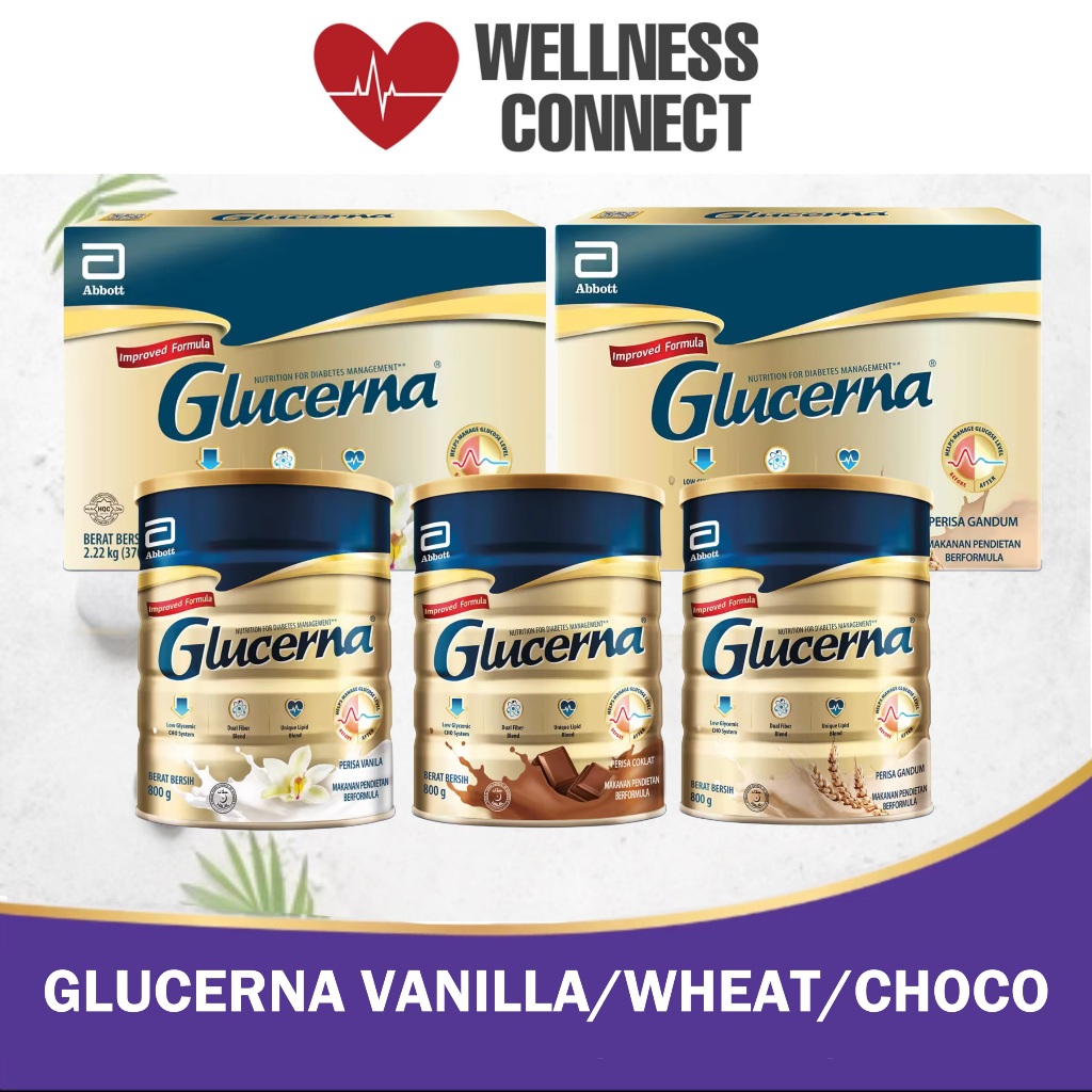 GLUCERNA VANILLA /WHEAT / CHOCOLATE TIN 800g/ BIB 2.22kg - MADE IN SPAIN/SINGAPORE