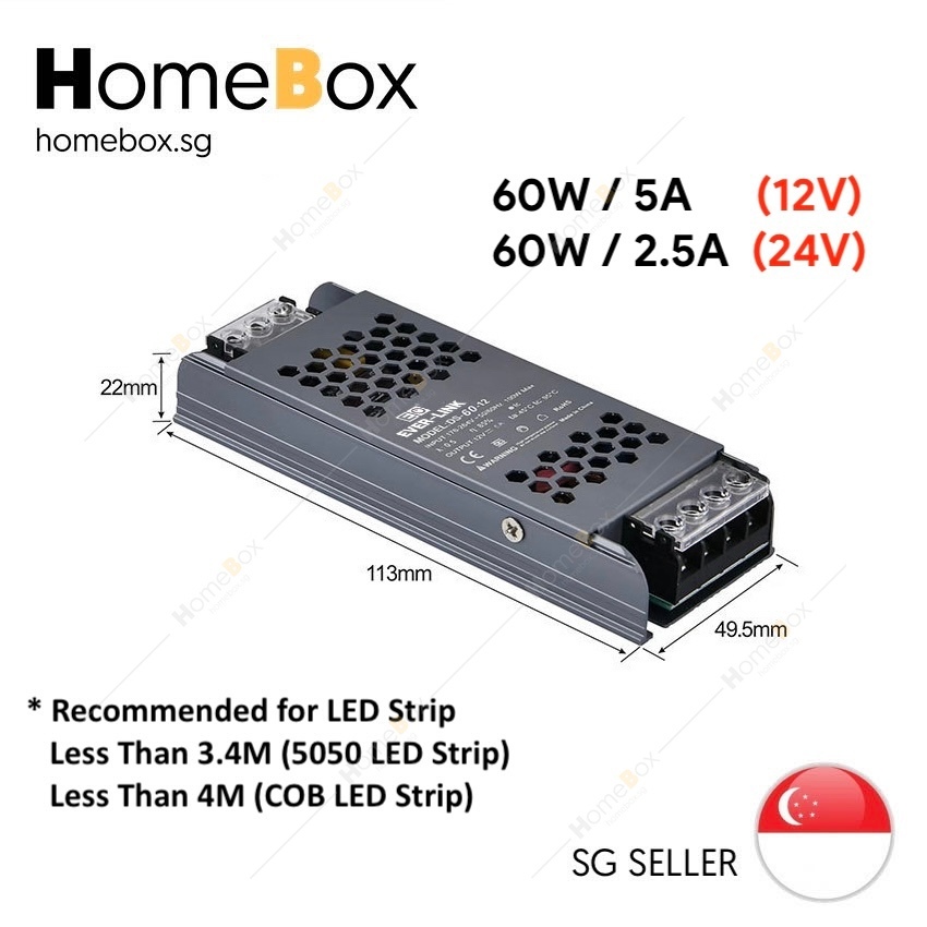 HomeBox 🇸🇬 12V / 24V LED Strip Cove Light Super Slim driver 60W 100W 150W 200W 300W