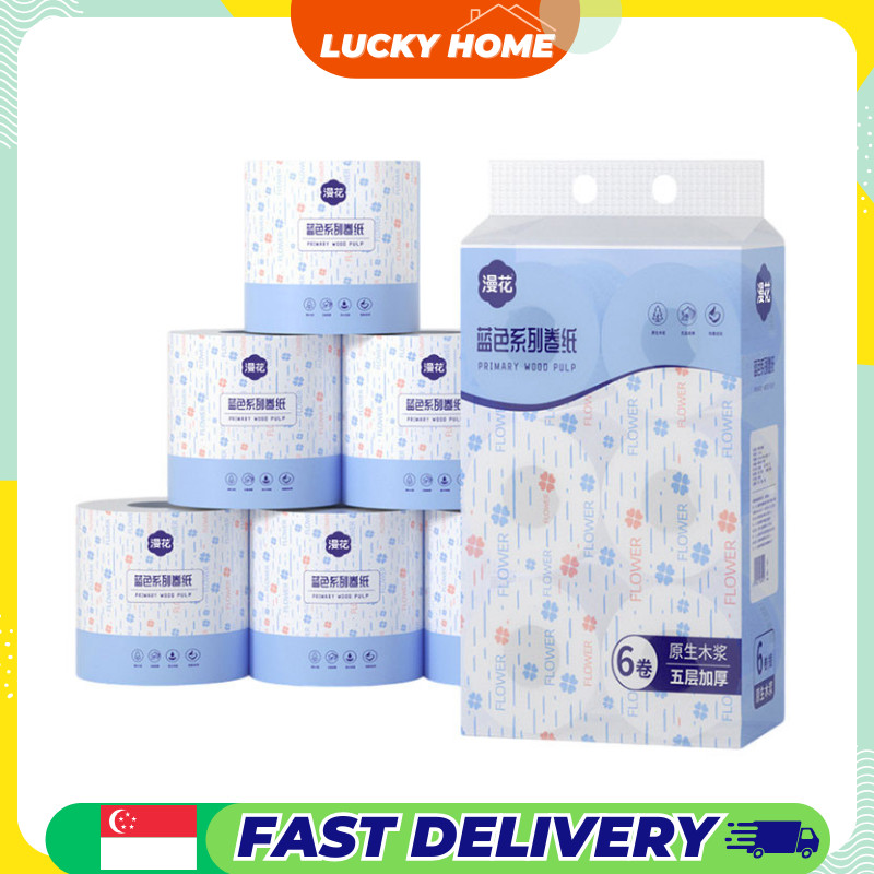 【24 Rolls/Box】ManHua Blue Series 5-Ply Toilet Paper Rolls 120g/ Household Napkin Paper/Facial Tissue, Local Stock
