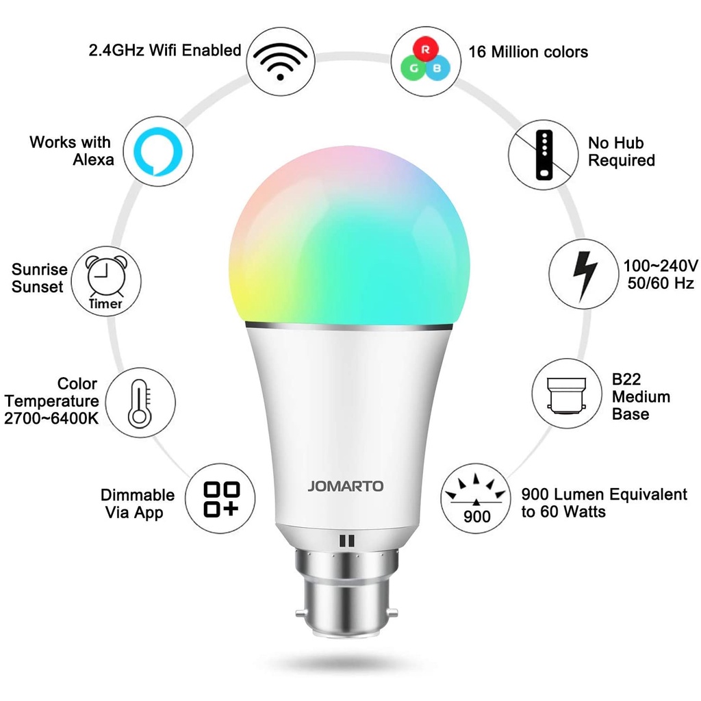 WiFi Smart Bulb, JOMARTO Bulb Bayonet 9W Smart Led Bulb Compatible with Alexa, Google Home and IFTTT, Dimmable RGB Smart