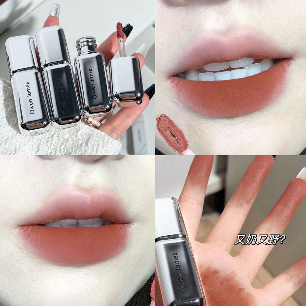 Owen James nude lipstick Brown Lip Glaze Matte Velvet Non-fading Whitening High-value Dark Lipstick