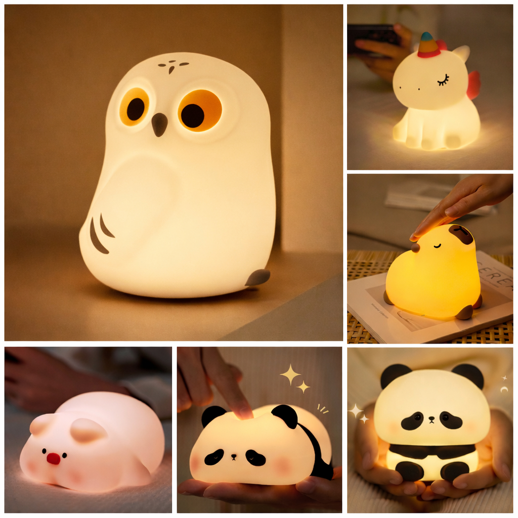 Cute and Funny Touch Silicone Night Light Owl Panda Capybara Eye Protection Sleep Bedside LED Lamp Rechargeable 硅胶小夜灯