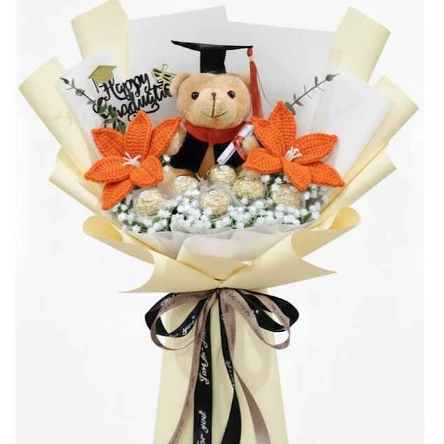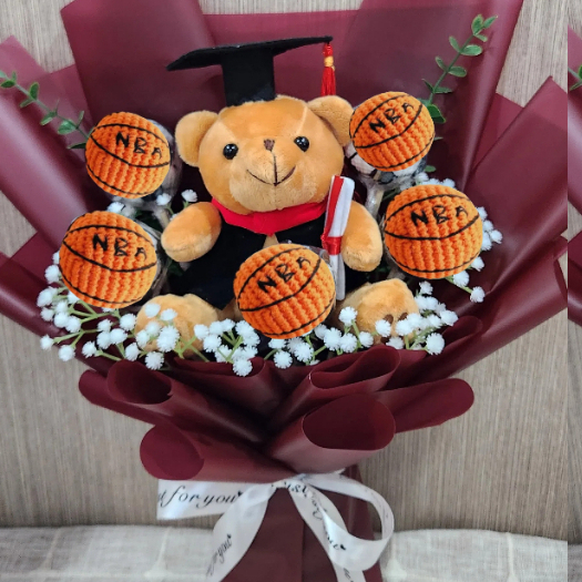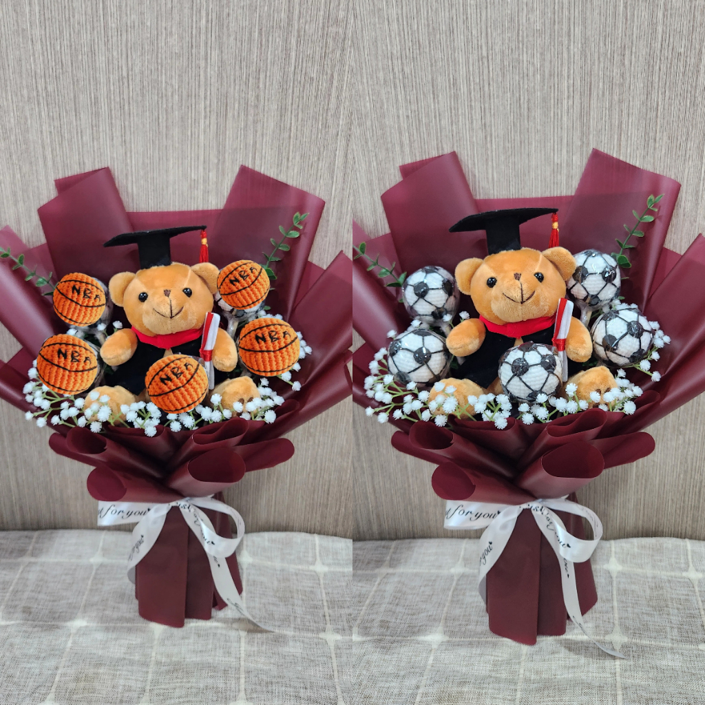 Graduation Bear Crochet Flowers Football Basketball Chocolate Ball Graduation Bouquet Graduation Day Ceremony Gift