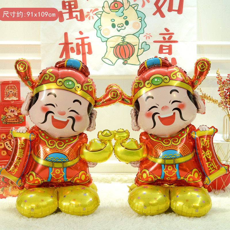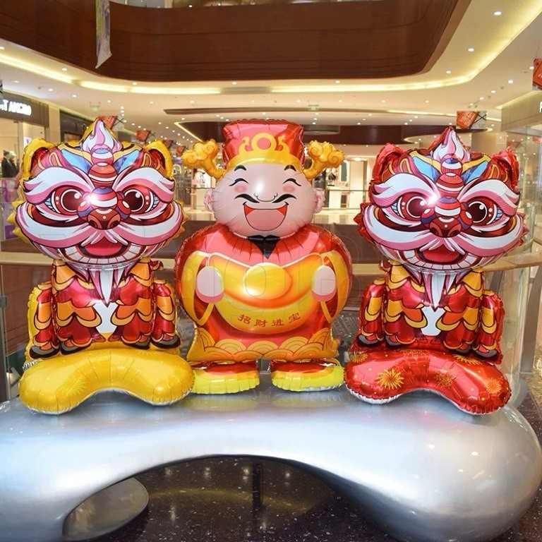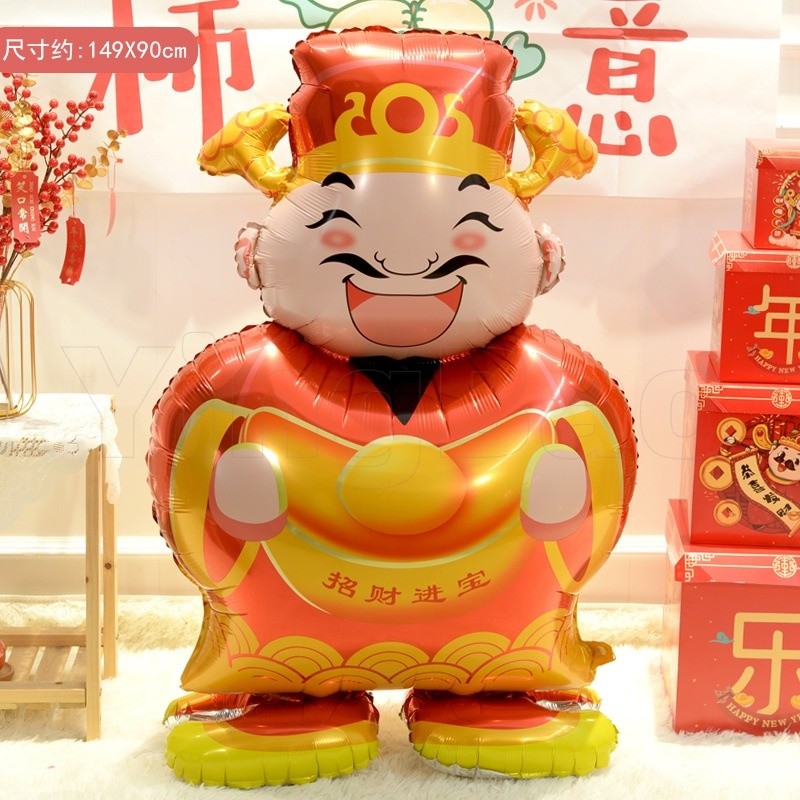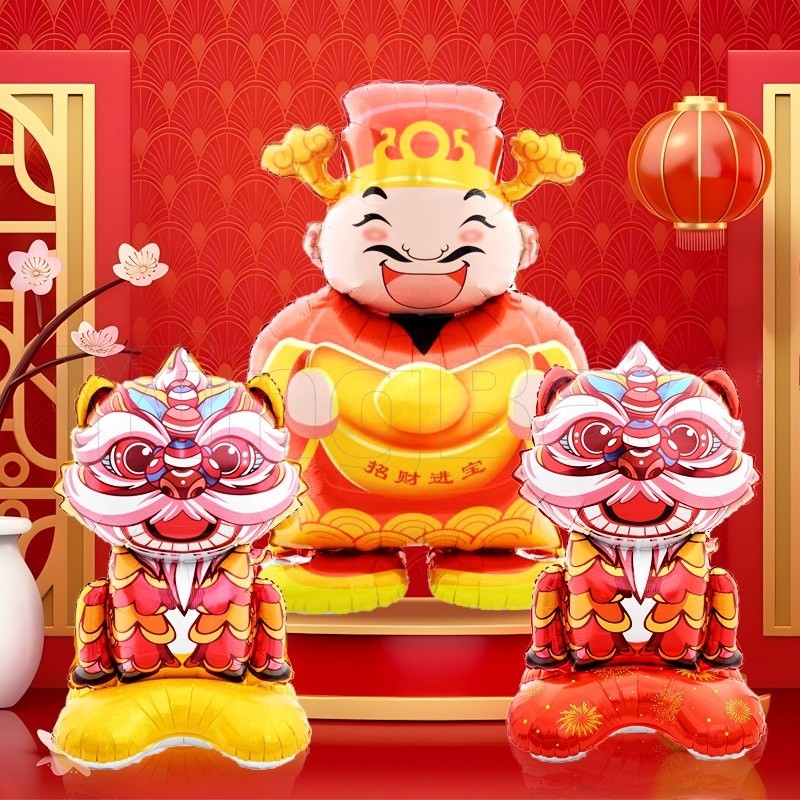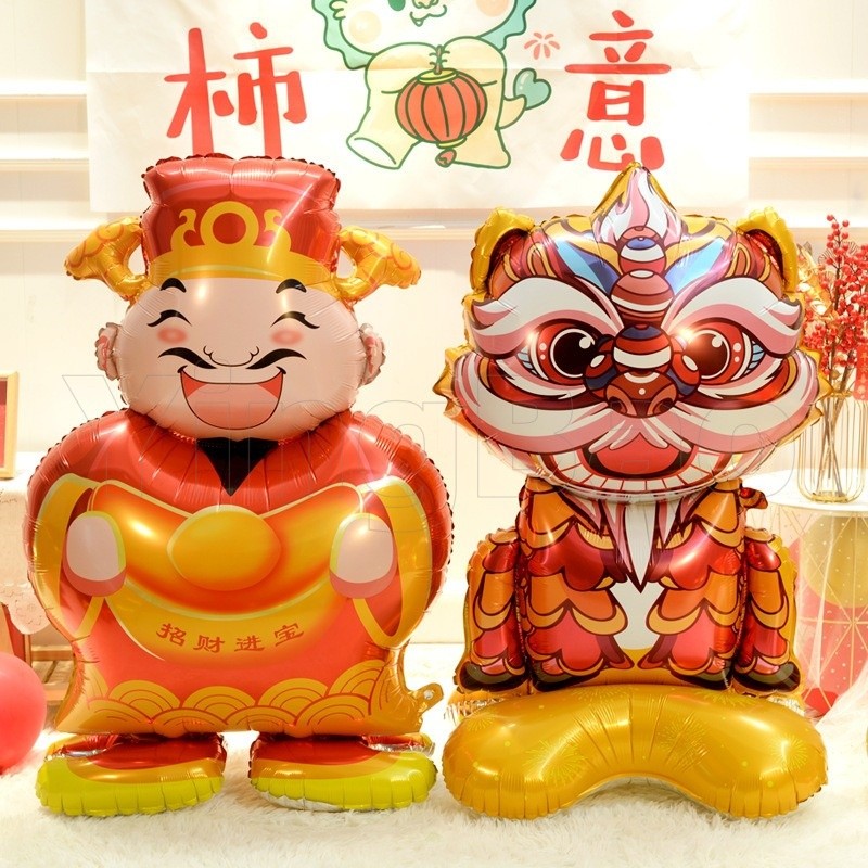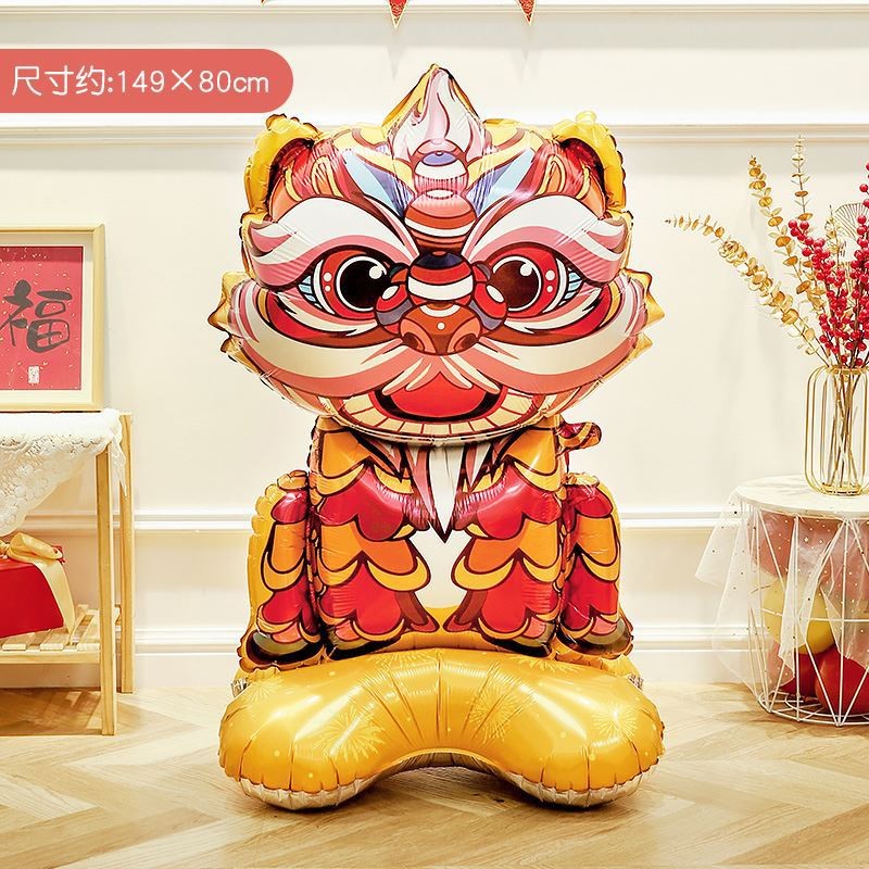 149cm Large Chinese New Year God of Wealth Aluminum Foil Balloon Lion Standing Balloon for Spring Festival Decorative Supplies