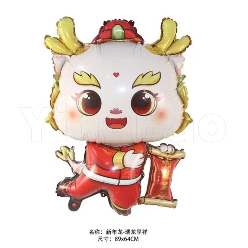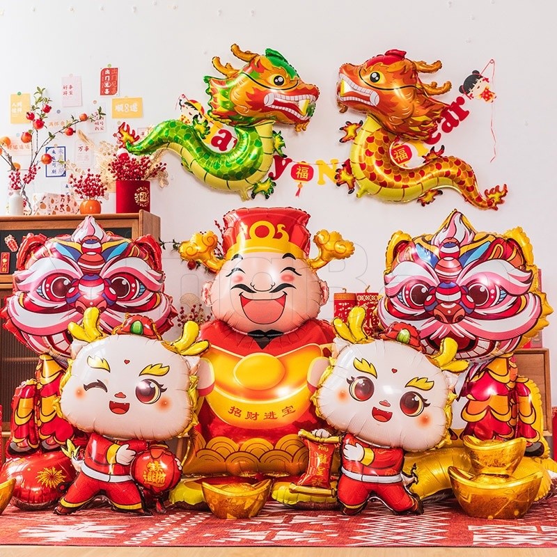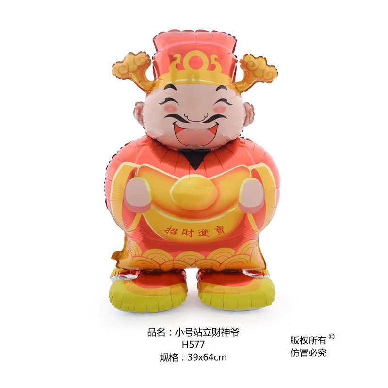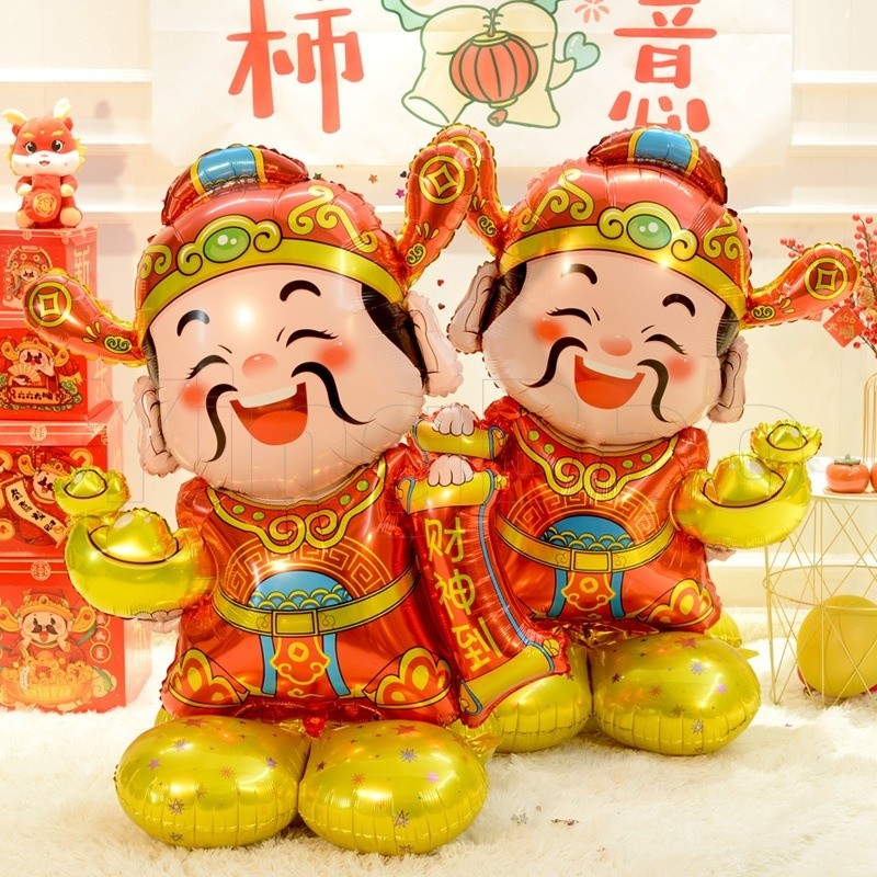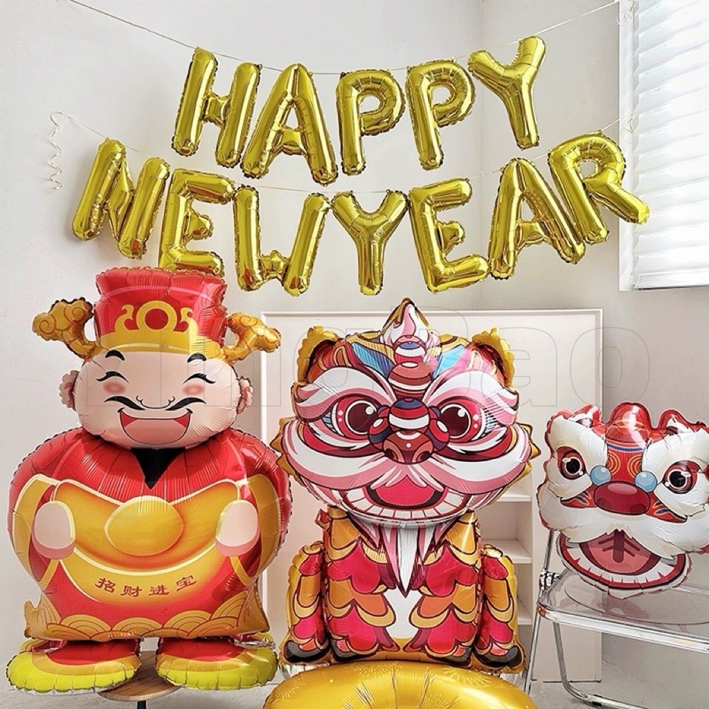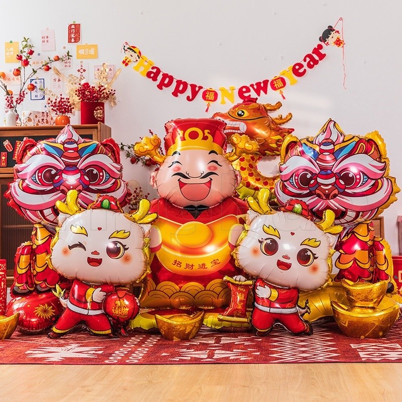 149cm Large Chinese New Year God of Wealth Aluminum Foil Balloon Lion Standing Balloon for Spring Festival Decorative Supplies