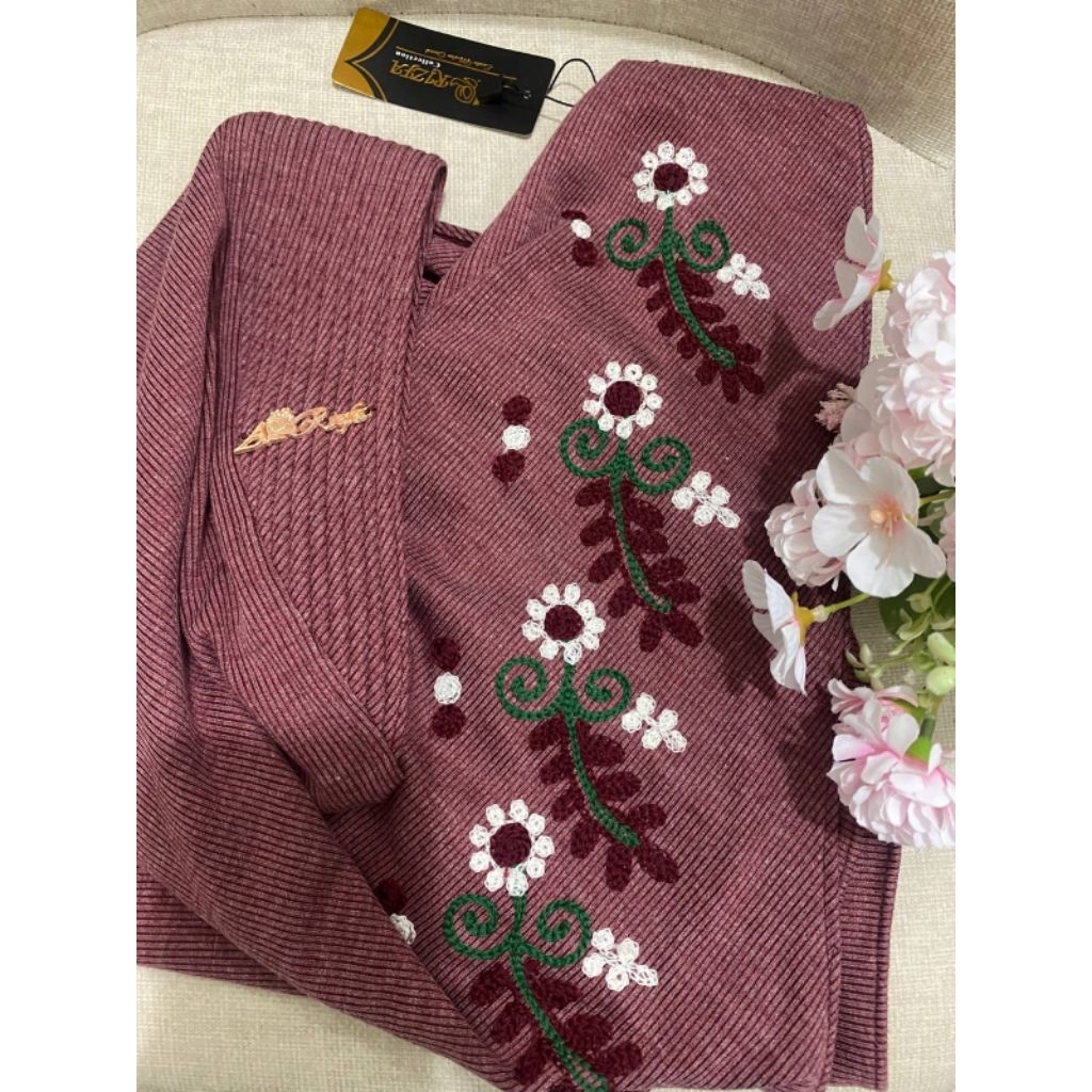 DEWISASHOP - HIJAB BERGO ROSALINDA PAD KNIT PLAIN BEAUTIFUL EMBROIDERY