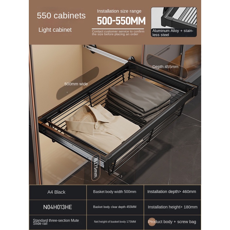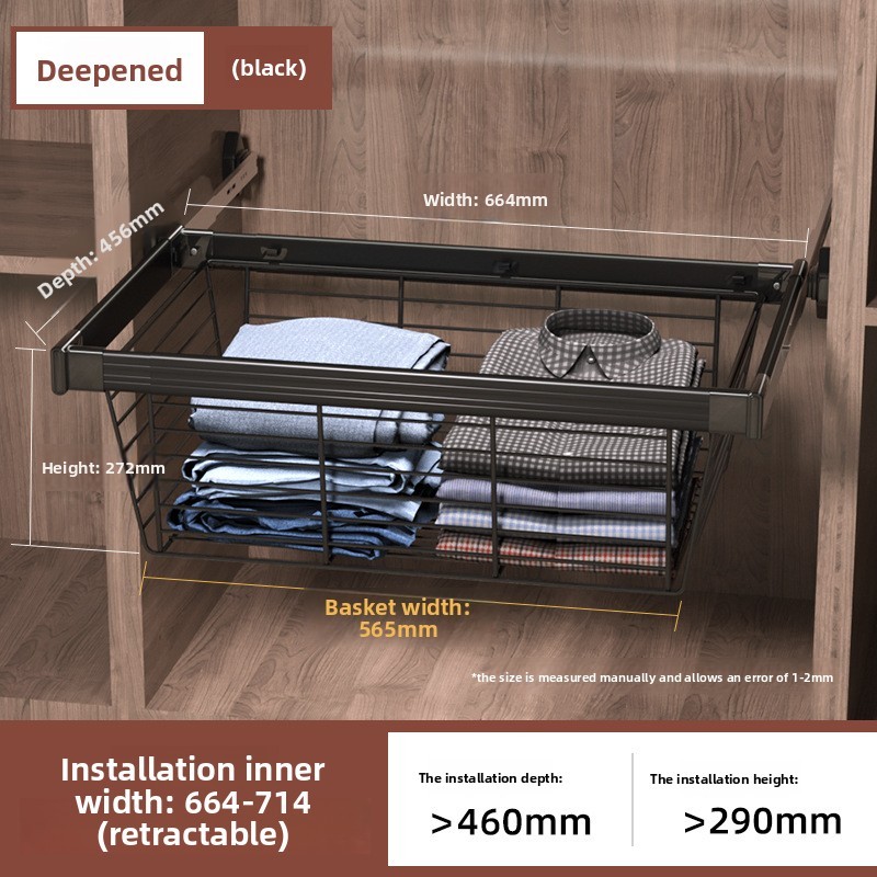 Wardrobe Pull Basket Drawer Type Cloakroom Pull Pants Rack Retractable Household Built-in Slide Rail Storage Pants Pump Hardware Accessories