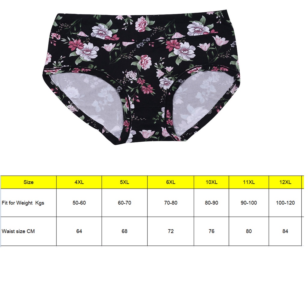 4XL-12XL Plus Size Stretchable Panties Fit Up to 120Kgs Breathable Flower Printing Women Underwear Comfortable Big Sized Female Fat Version Briefs Lingrie 7 Colors