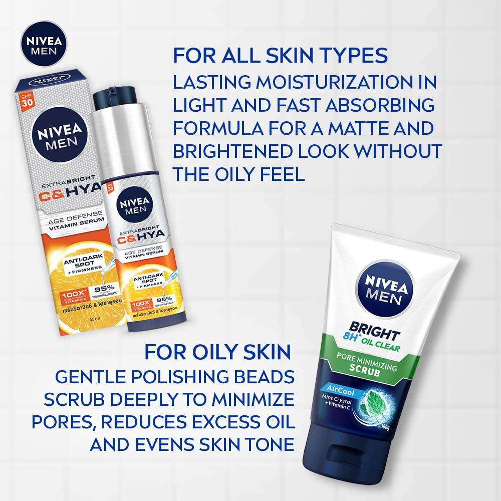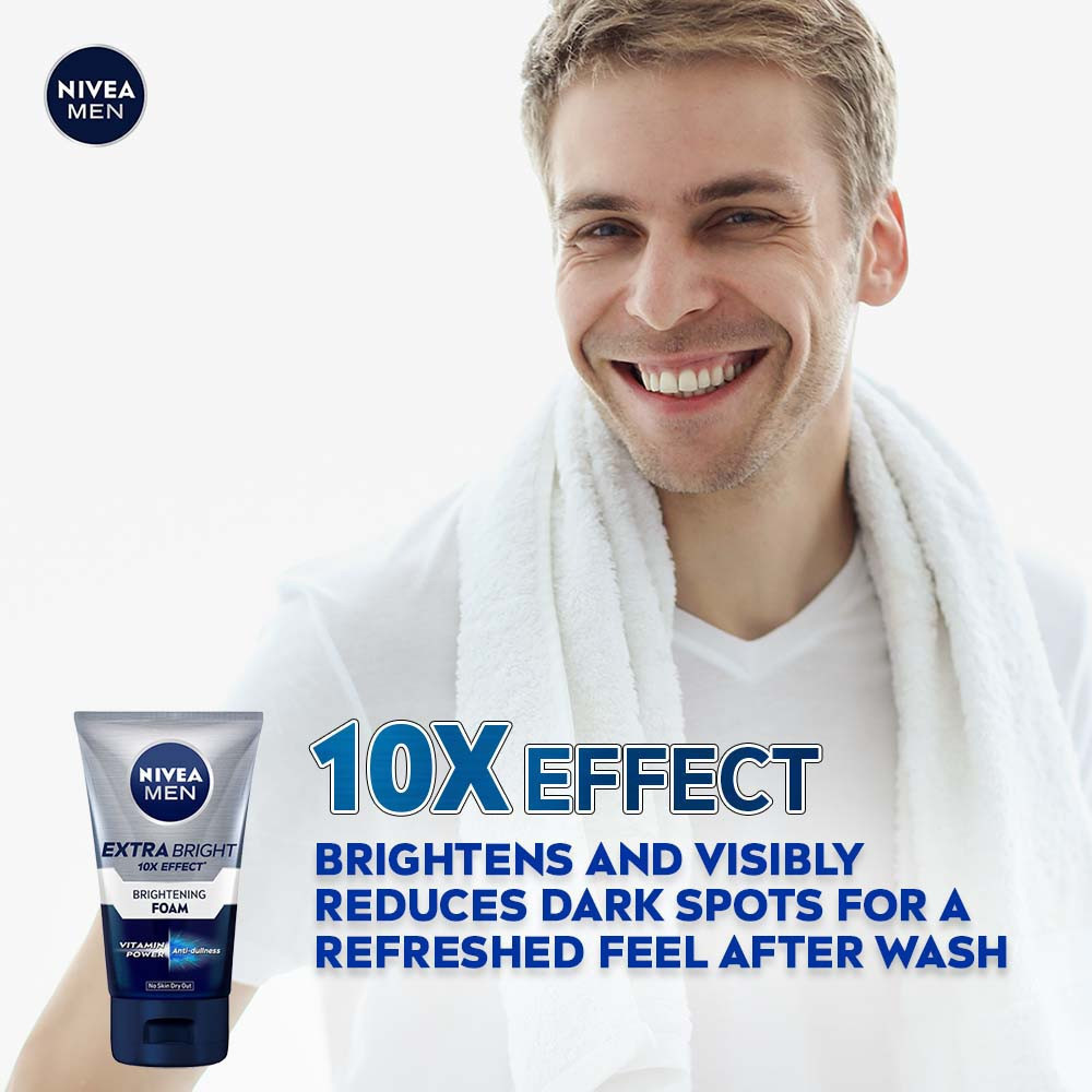 NIVEA MEN Cleanser Extra Brightening Facial Foam (100g) / Face Cleansing / Anti Dark Spots / Reduces Spots