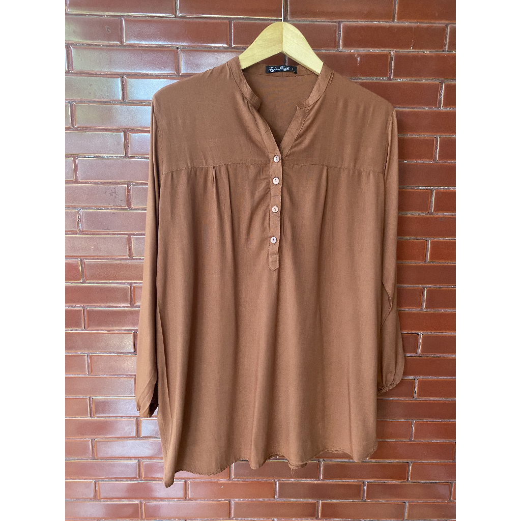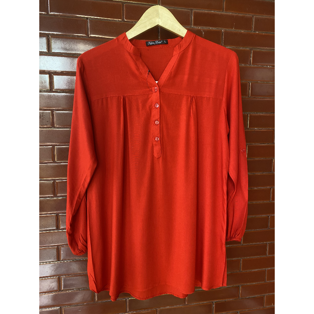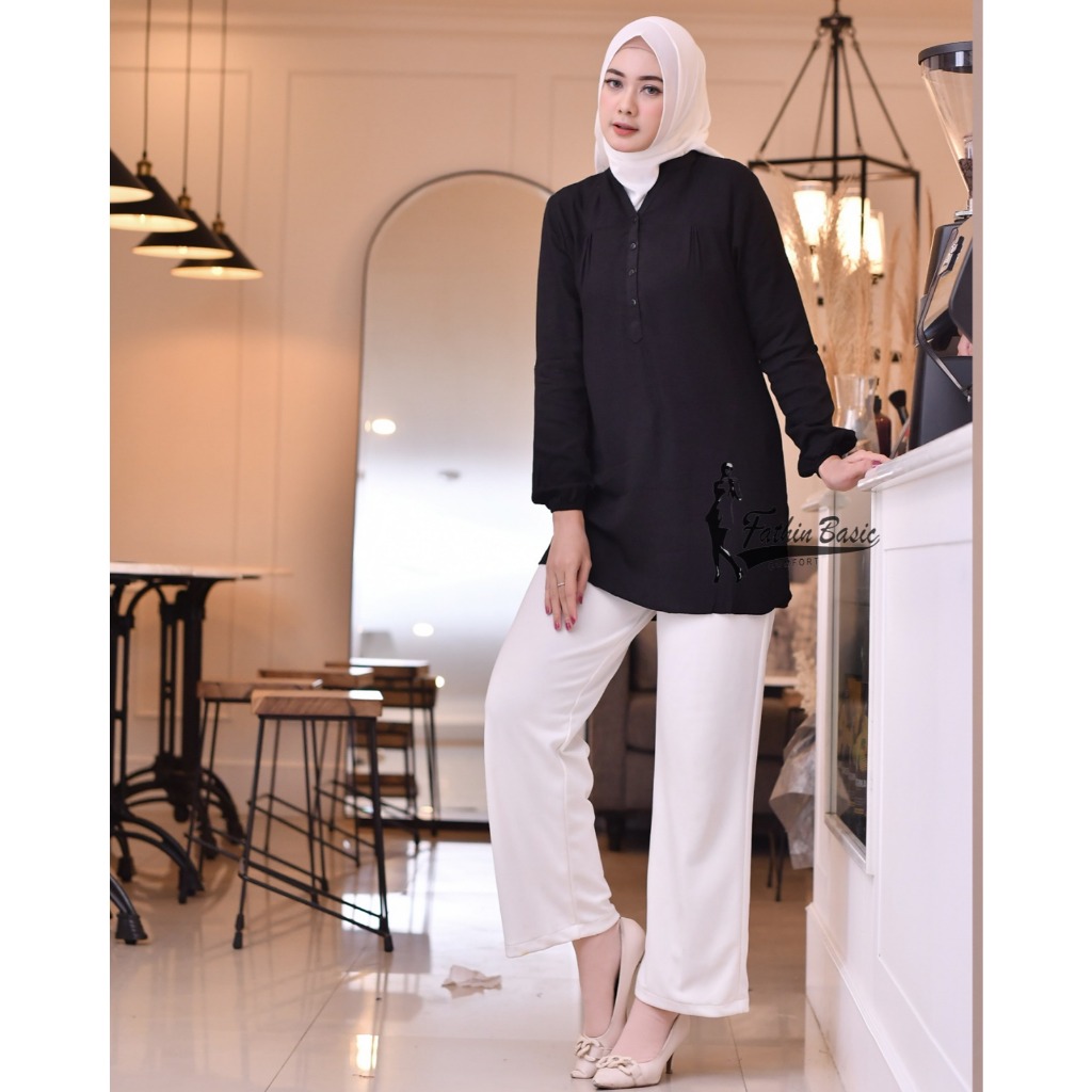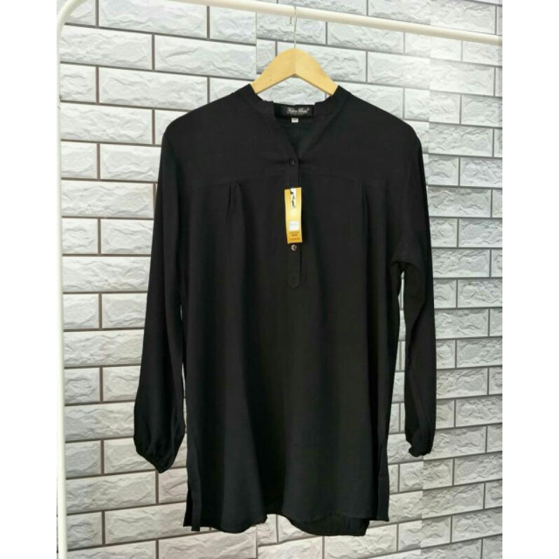 Plain black rayon blouse, fathin basic, comfortable, soft, long sleeves