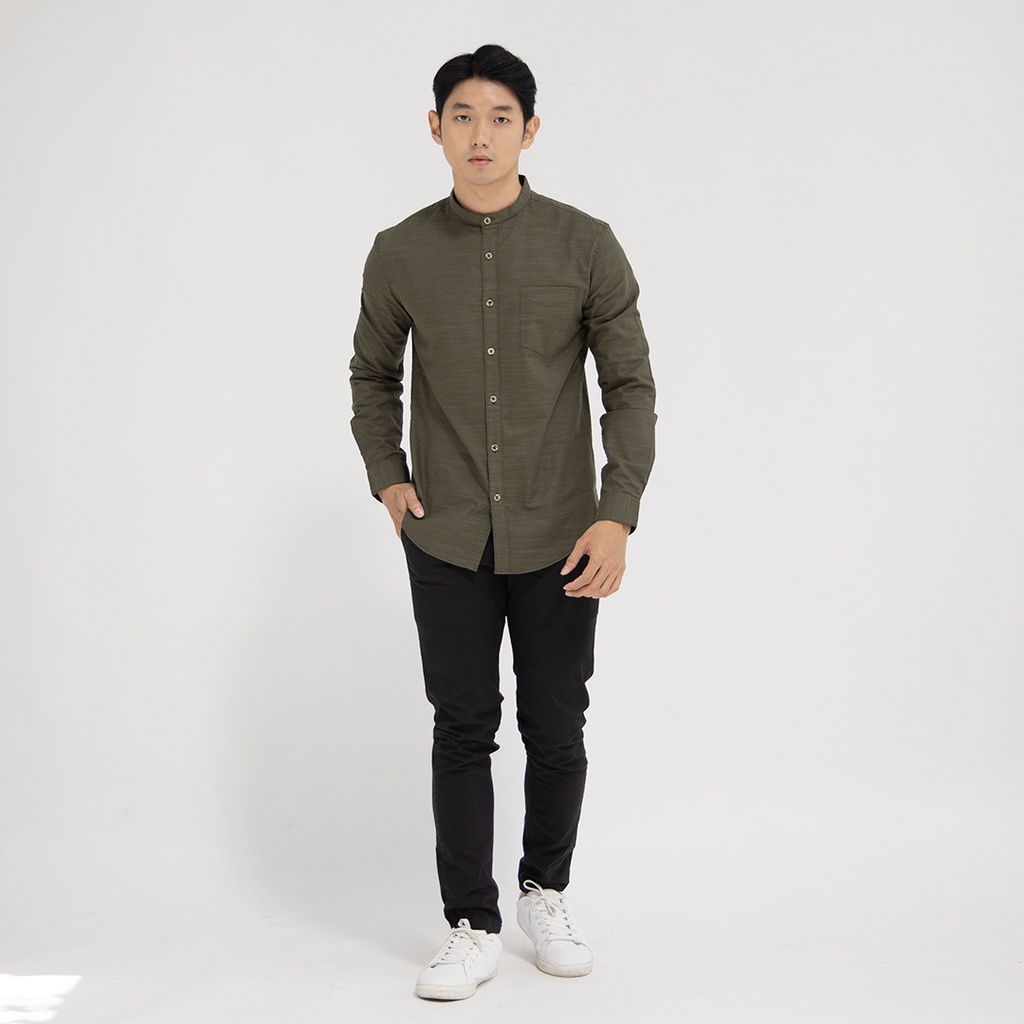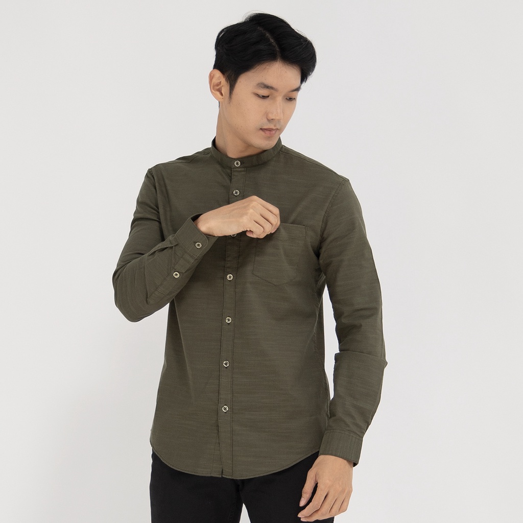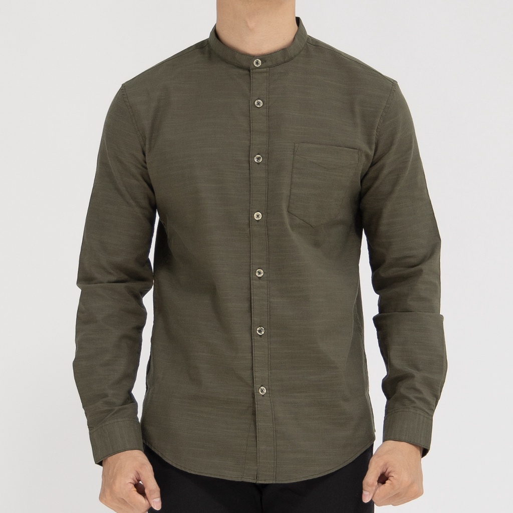 KEMEJA HIJAU Collarless Shirt Premium SLUB OXCON Green Sage Dark Sage