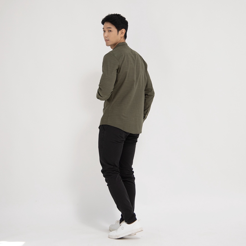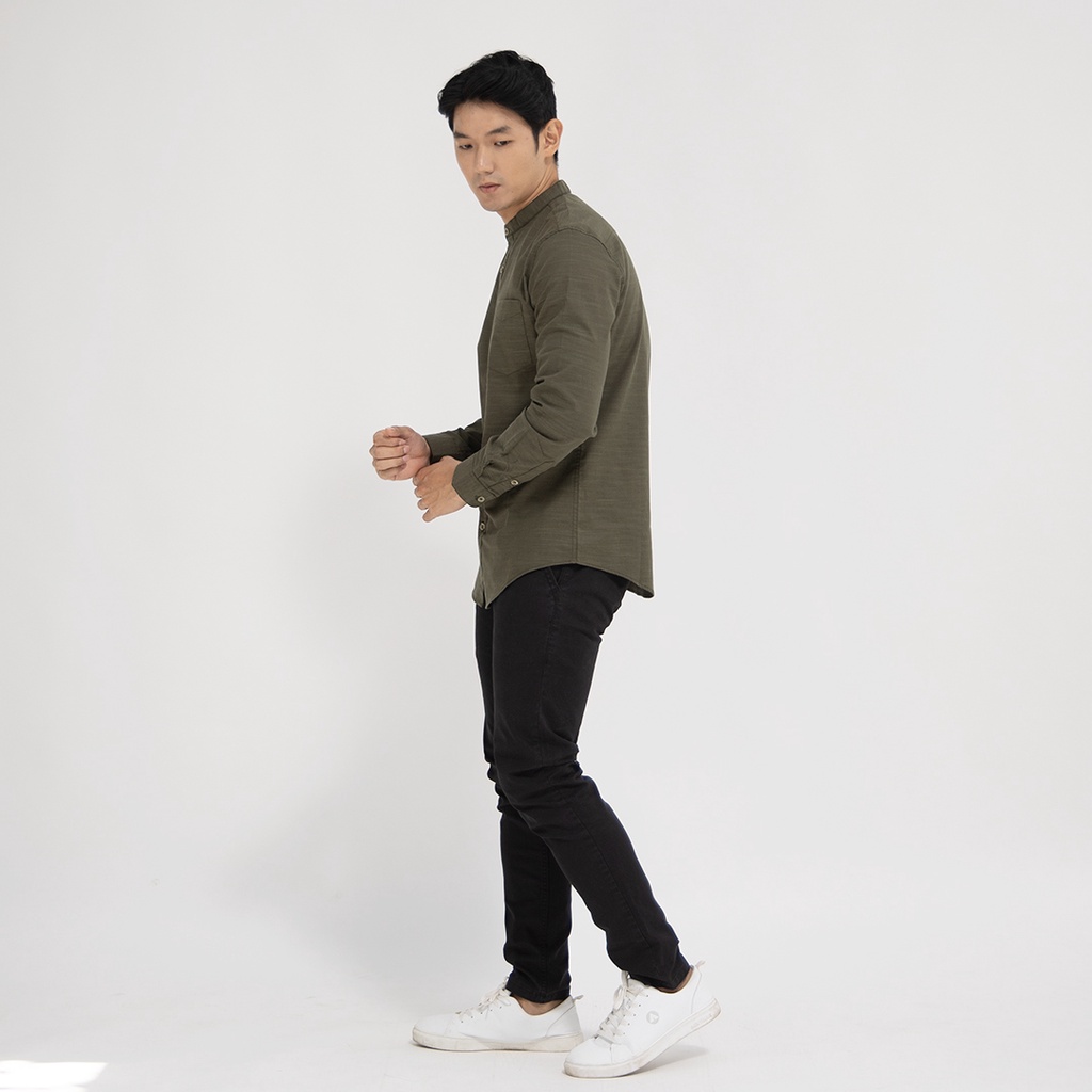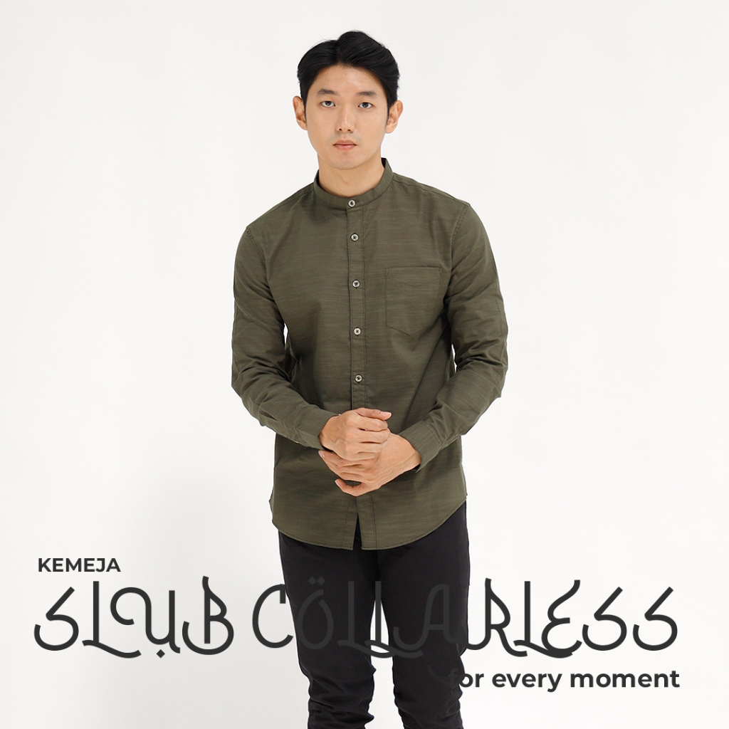 KEMEJA HIJAU Collarless Shirt Premium SLUB OXCON Green Sage Dark Sage