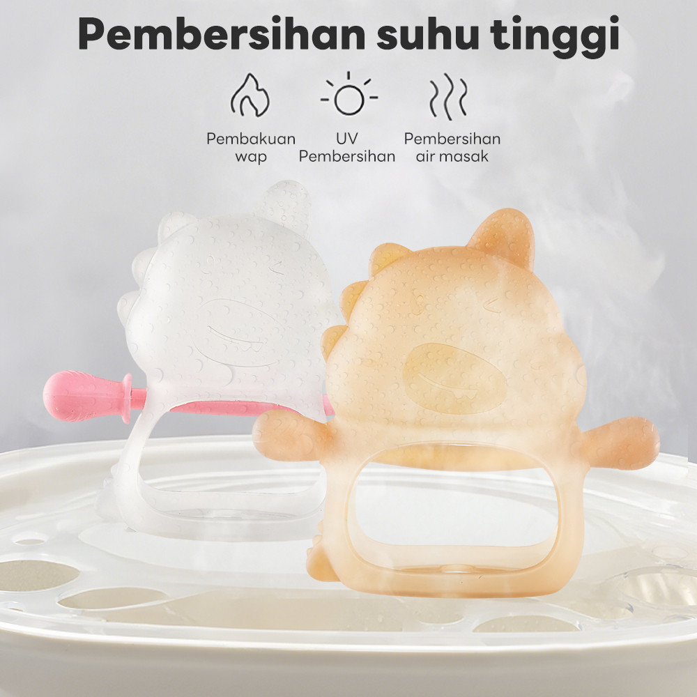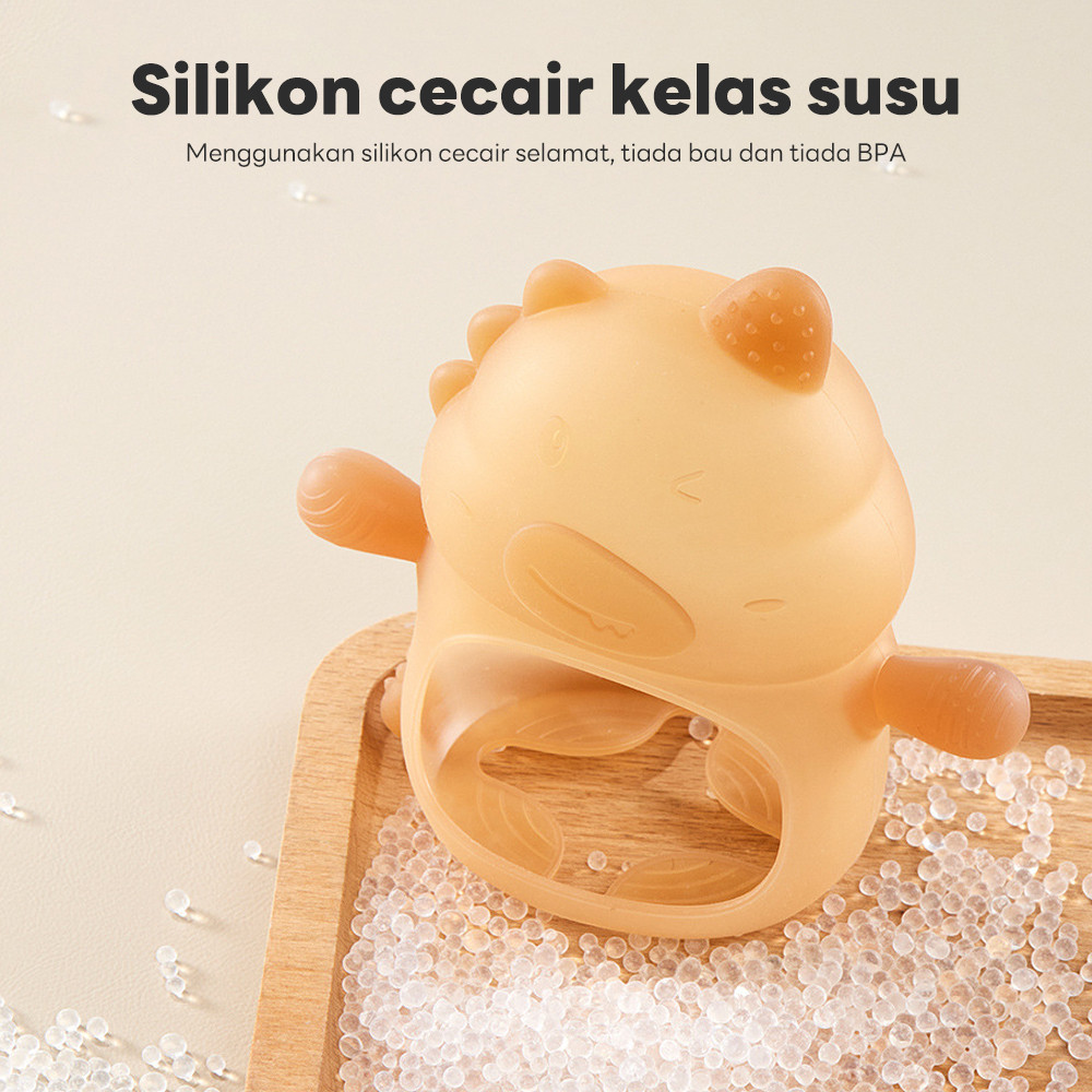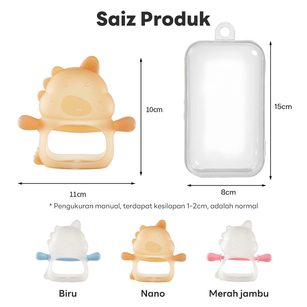 LAKOE Mainan Gigit Bayi Gloves BPA-Free Baby Teether Silicone Chew Toy Soft​​ Dinosaur Teething Ring​​ For Newborn
