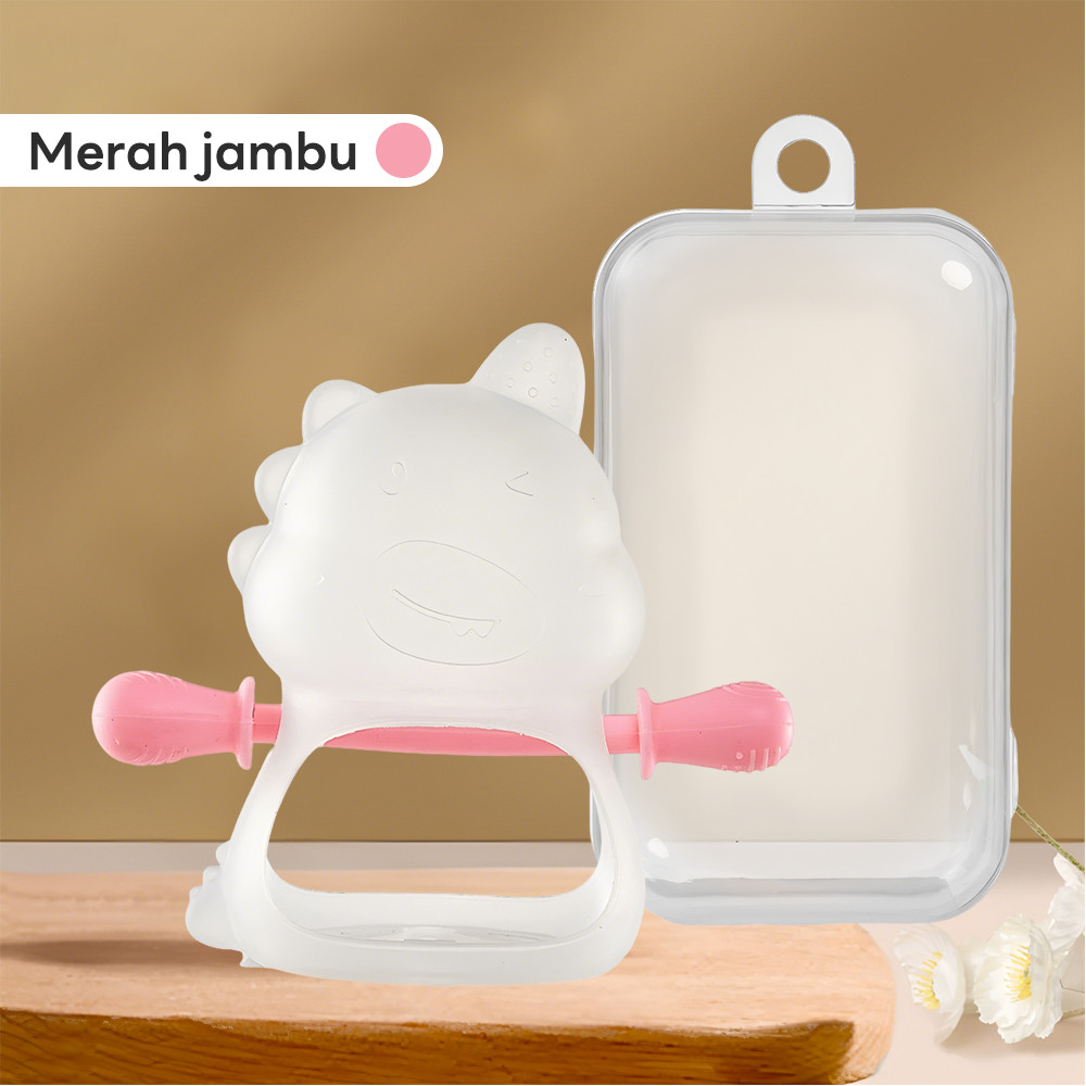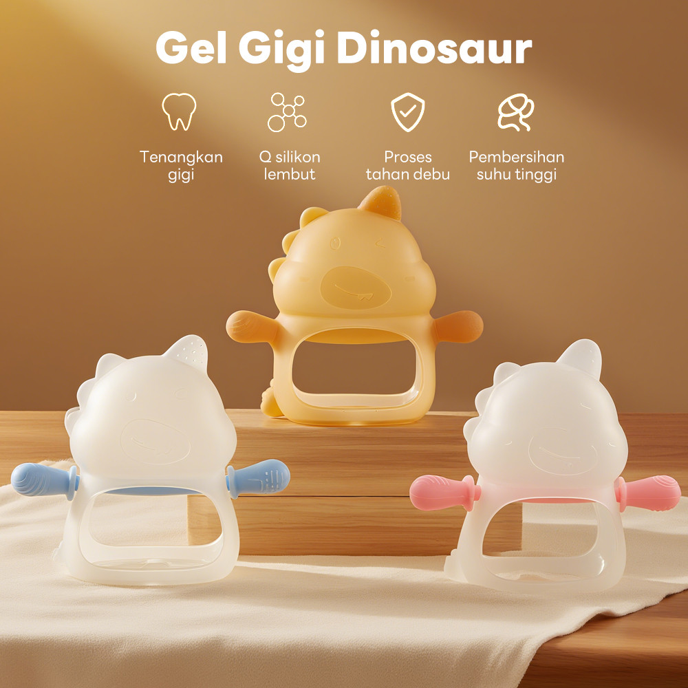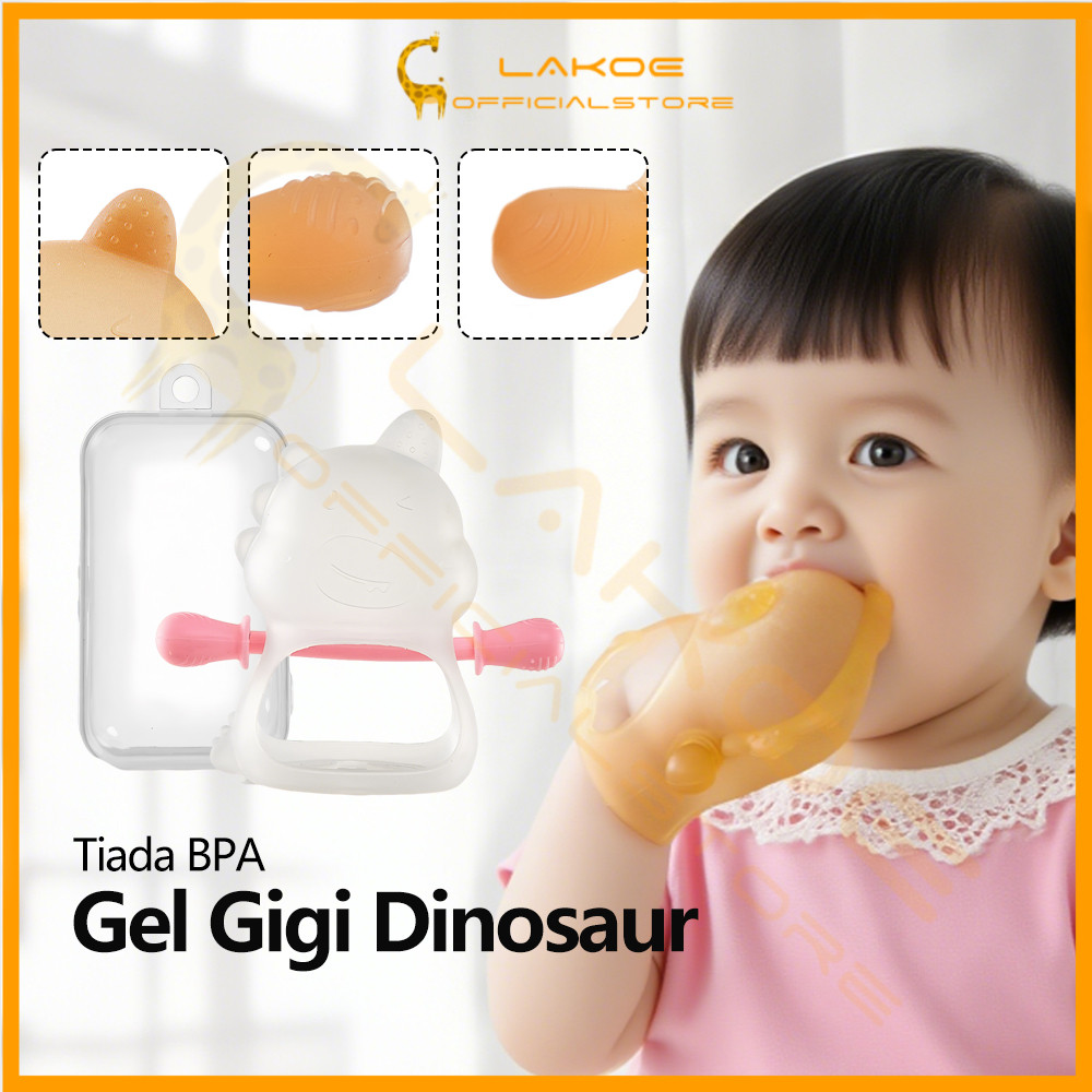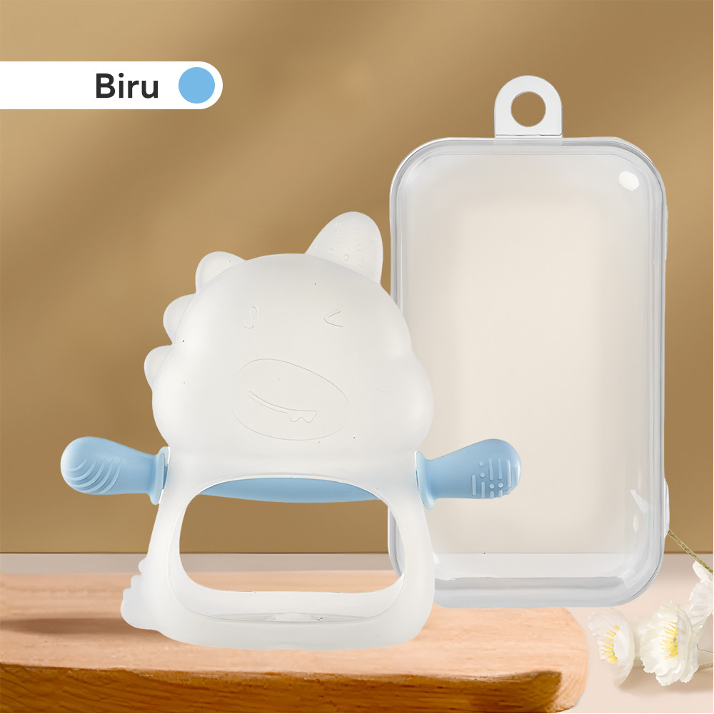 LAKOE Mainan Gigit Bayi Gloves BPA-Free Baby Teether Silicone Chew Toy Soft​​ Dinosaur Teething Ring​​ For Newborn
