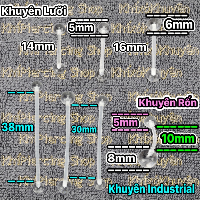Transparent Plastic Piercings in various positions (Price is for 1 piece) Tongue Piercings - Navel Piercings