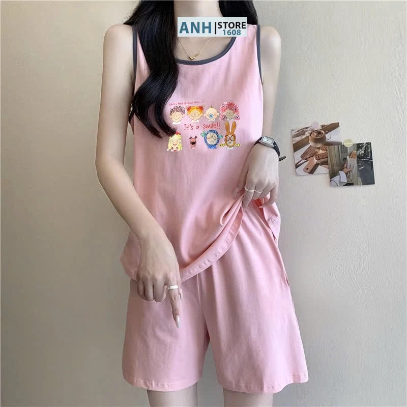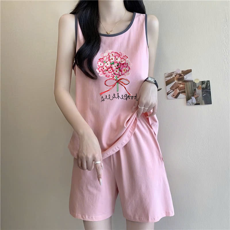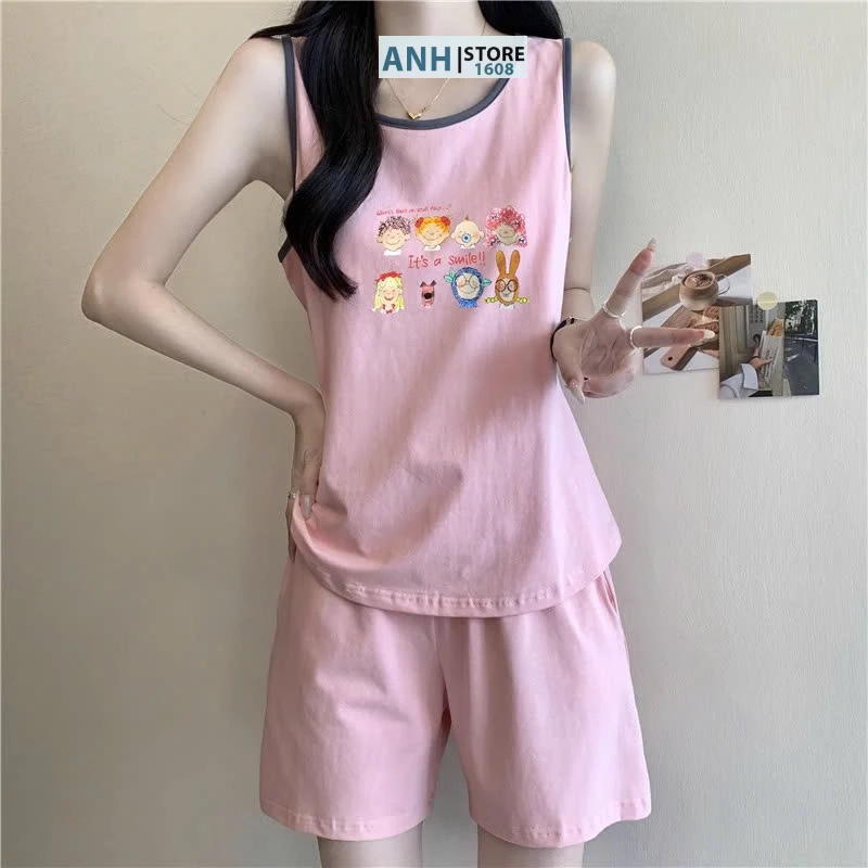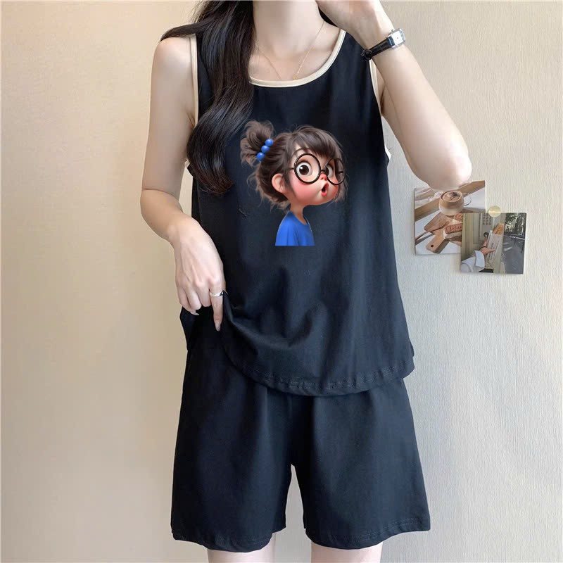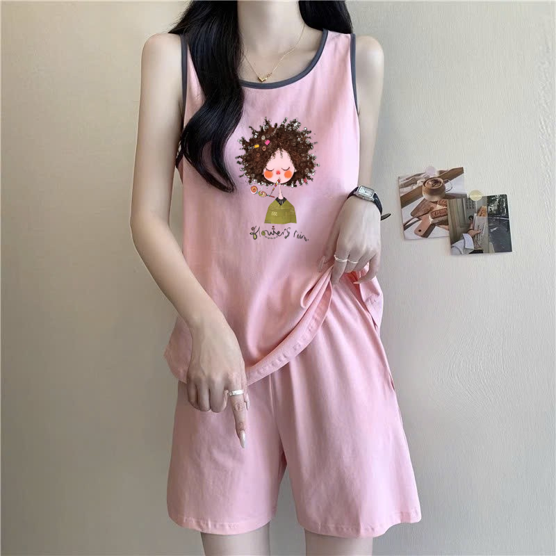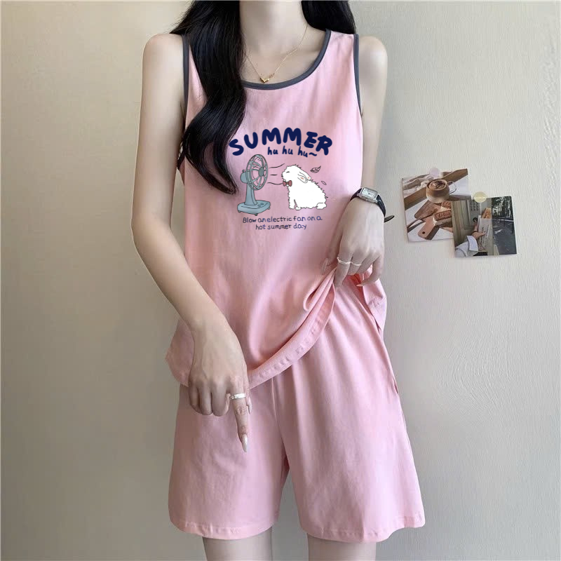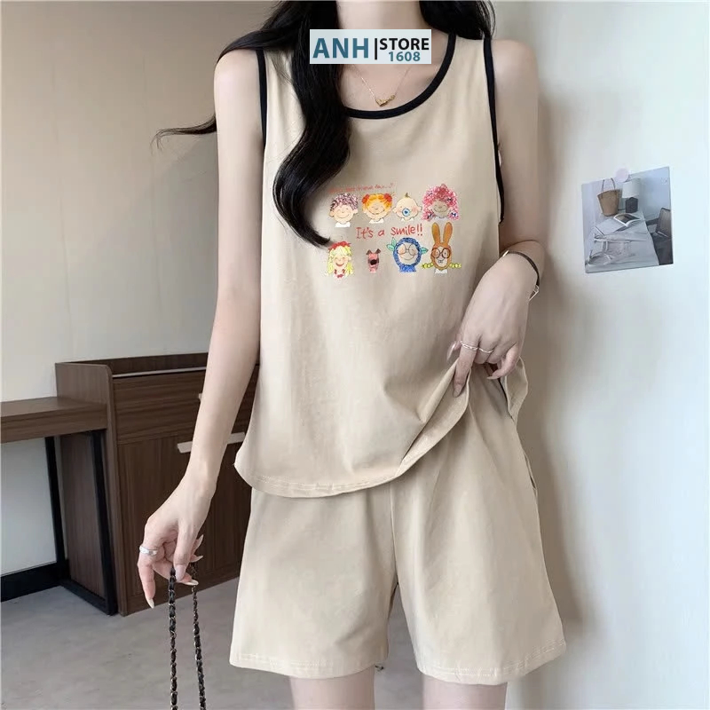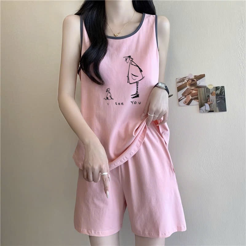 ANHSTORE super cool cotton women's 3-hole home wear set, cute summer home wear set with loose and comfortable style