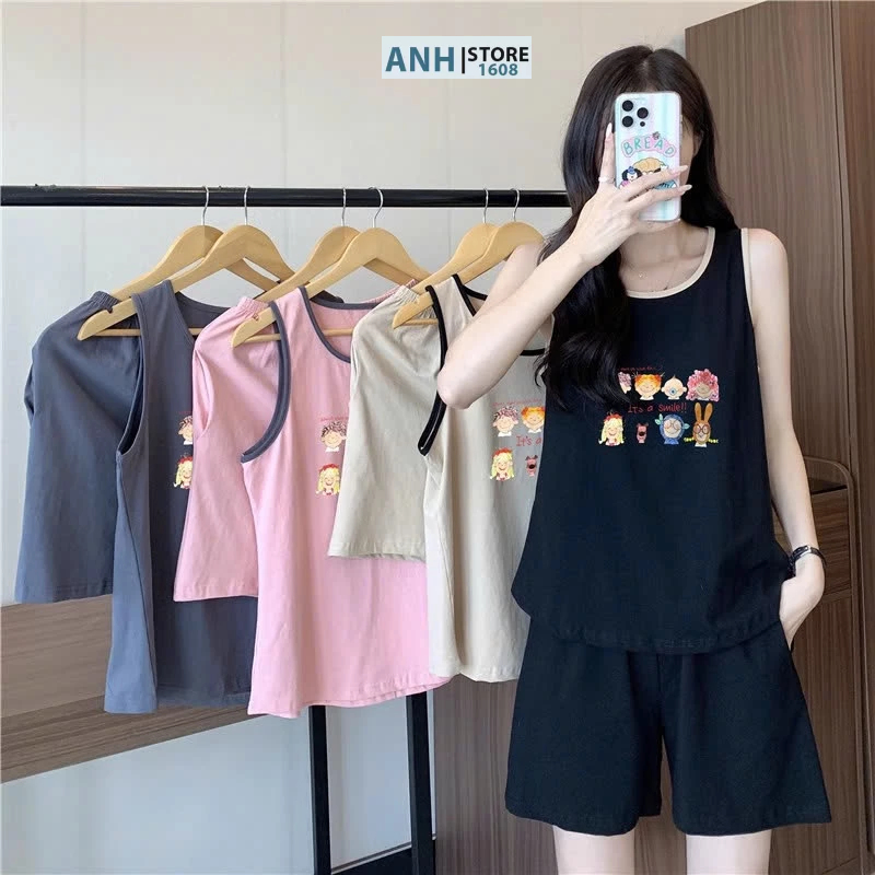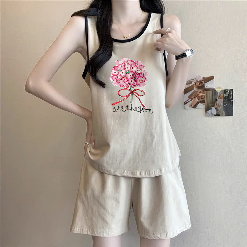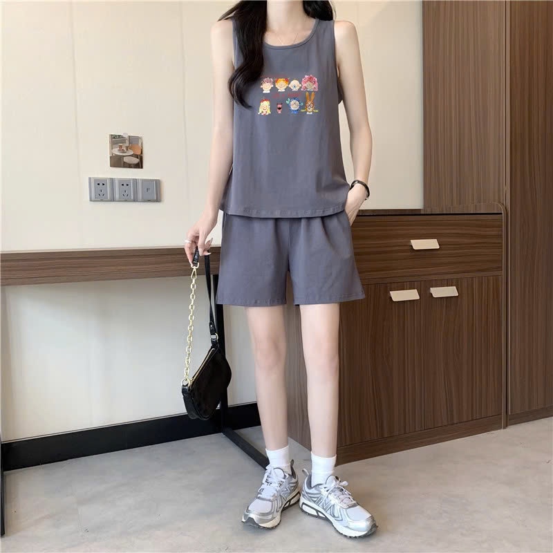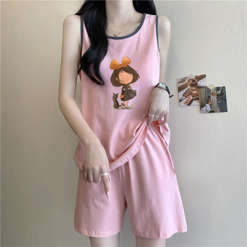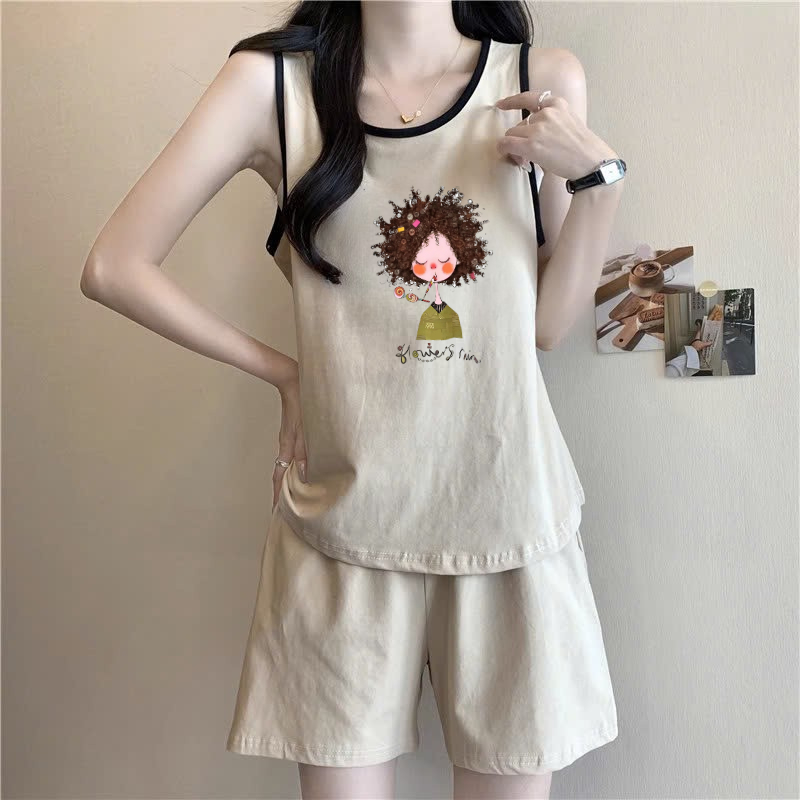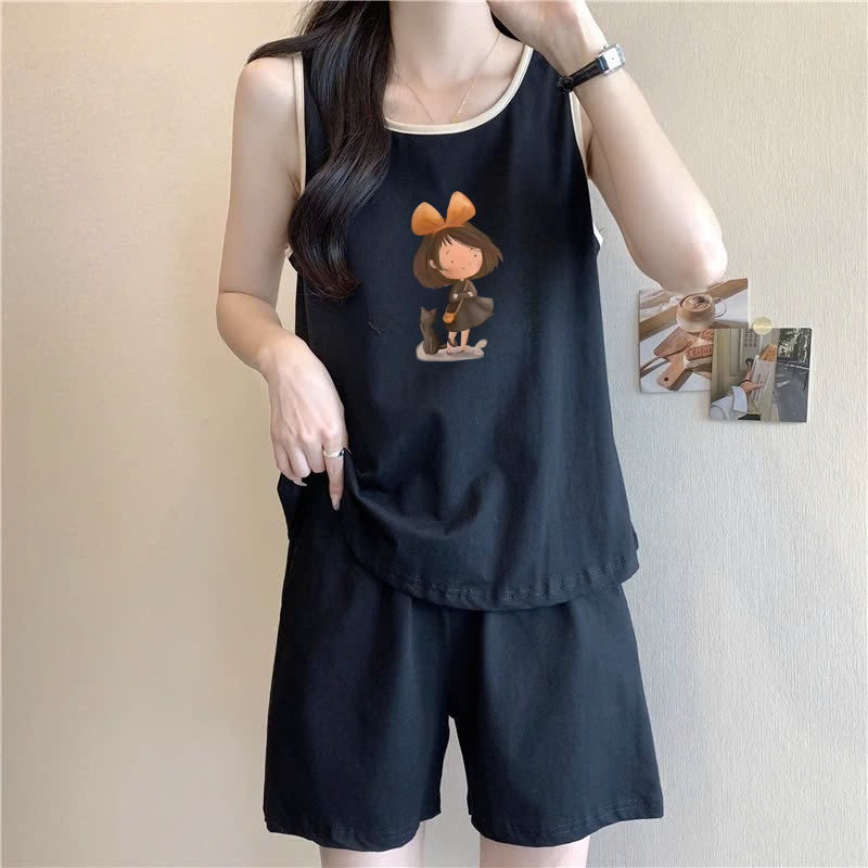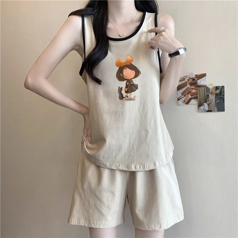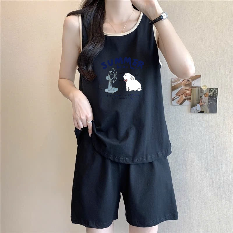 ANHSTORE super cool cotton women's 3-hole home wear set, cute summer home wear set with loose and comfortable style