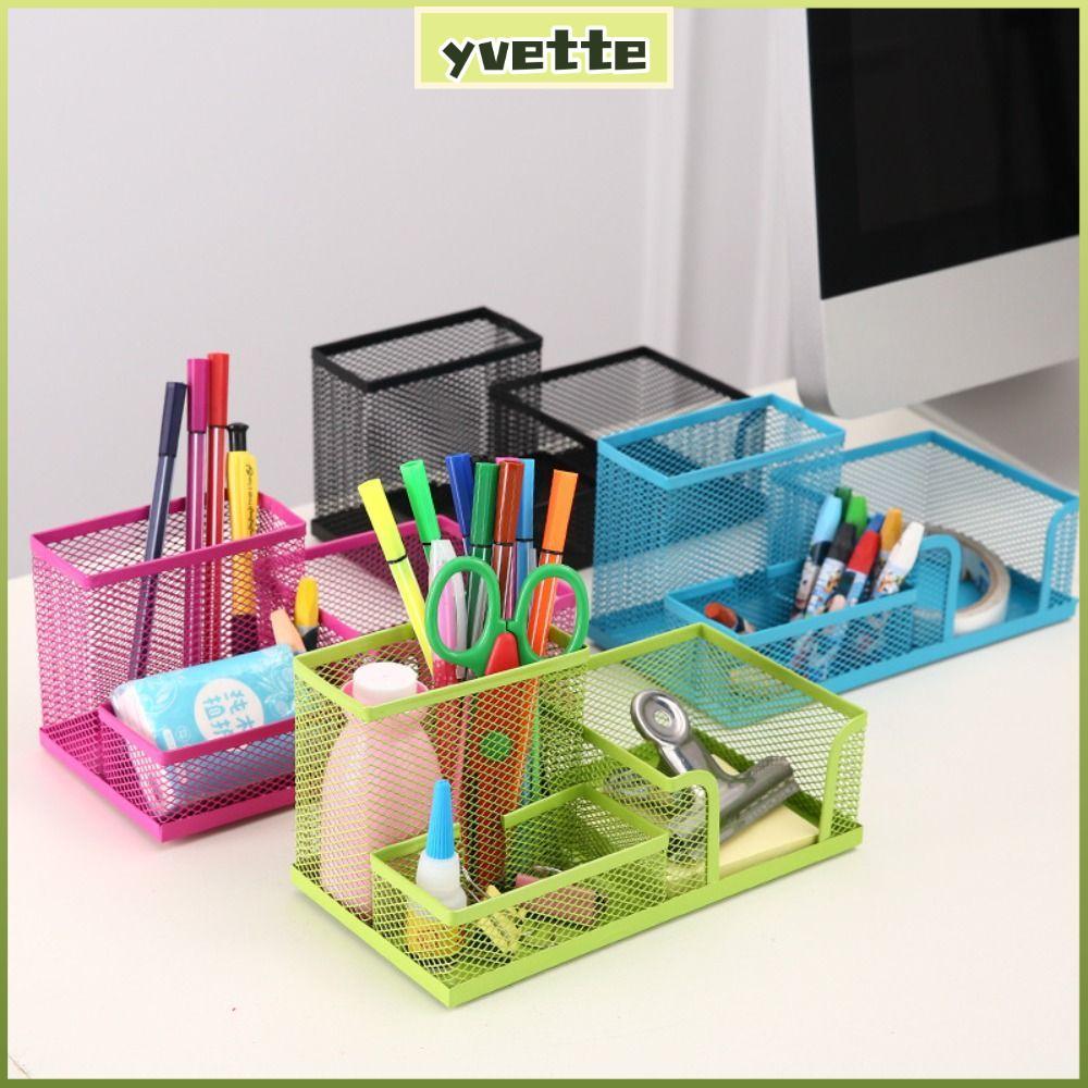 YVE Black Mesh Pen Holder Durable Office Desk Top 3/4 Grids File Storage Rack