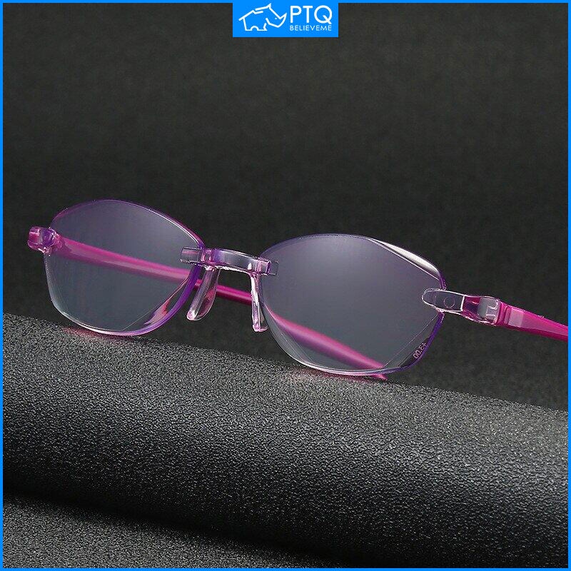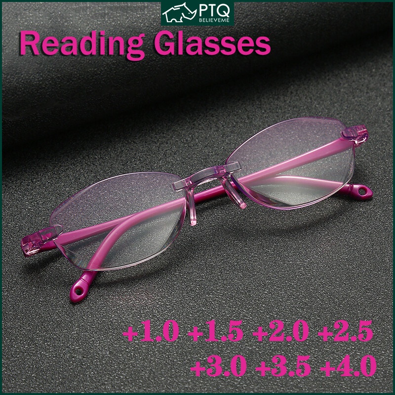 PTQ Anti Blue Reading Glasses Ultralight Rimless Eyewear Ladies Retro Eyewear +1.0+1.5+2.0+2.5+3.0+3.5+4.0
