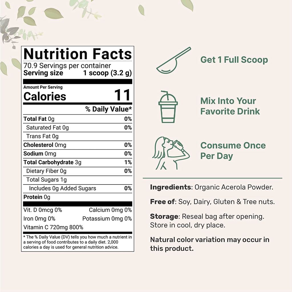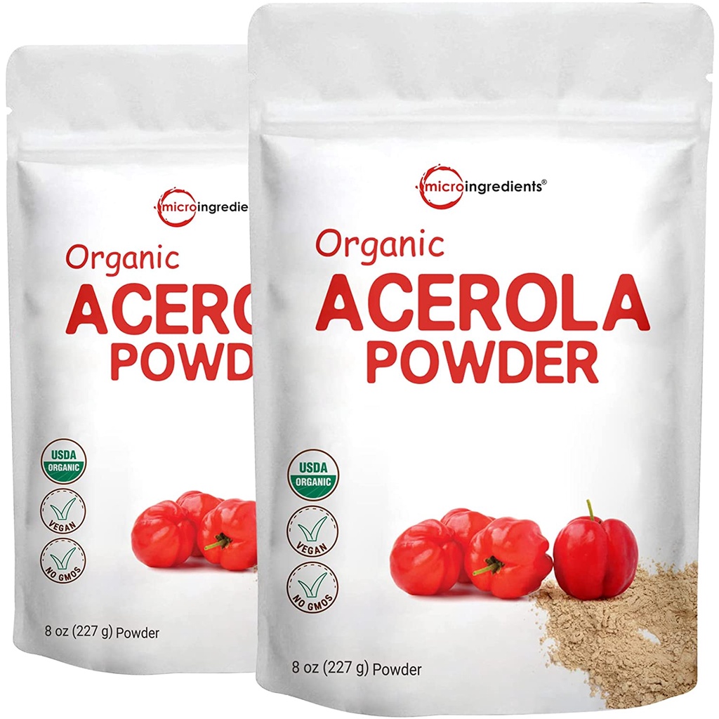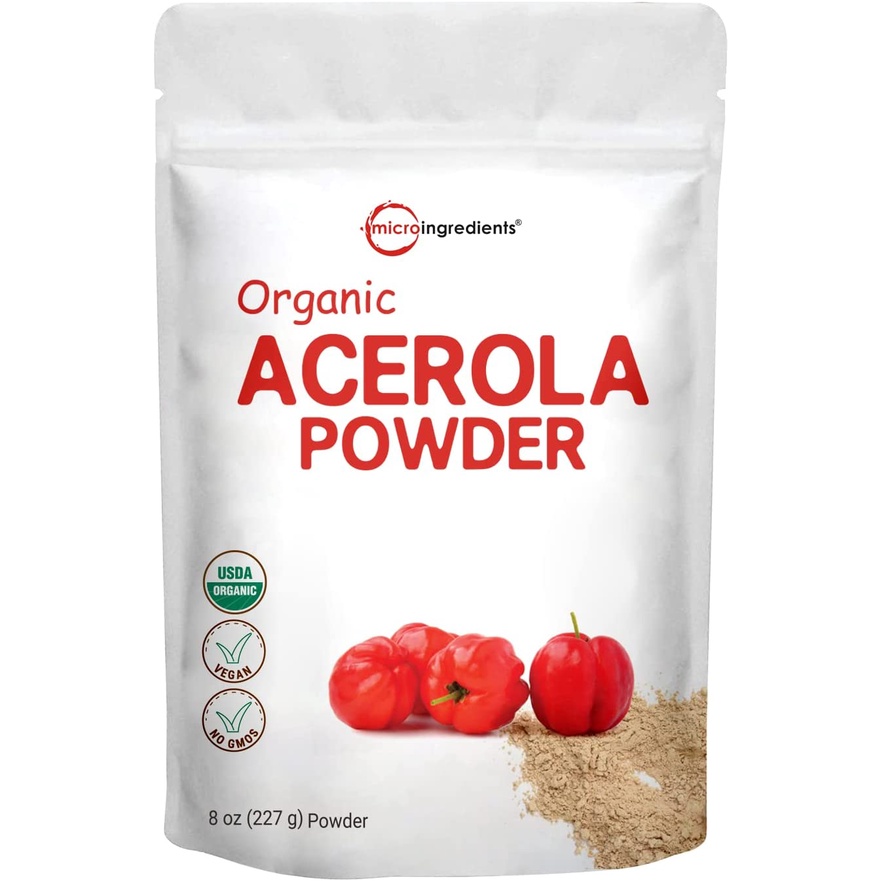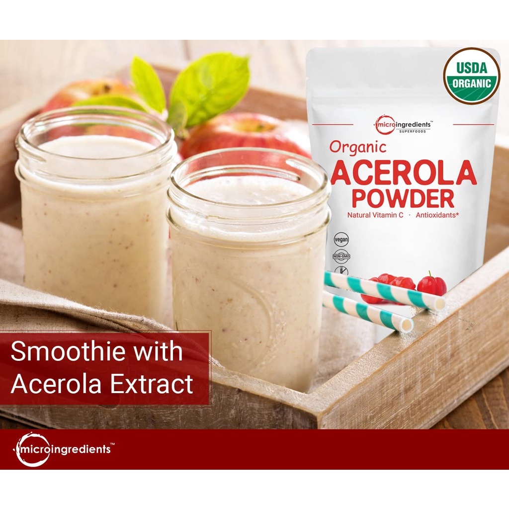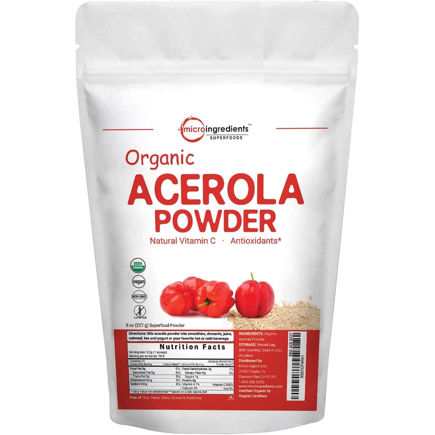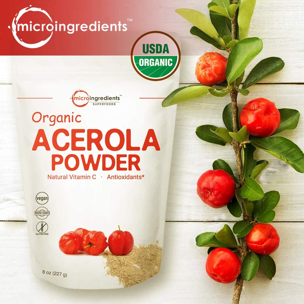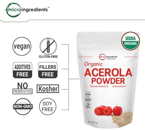 Micro Ingredients Pure Acerola Cherry 8 Ounce Powder Organic, Natural Organic Vitamin C for Immune System Booster, Best Superfoods for Beverage, Smoothie and Drinks Vegan Friendly