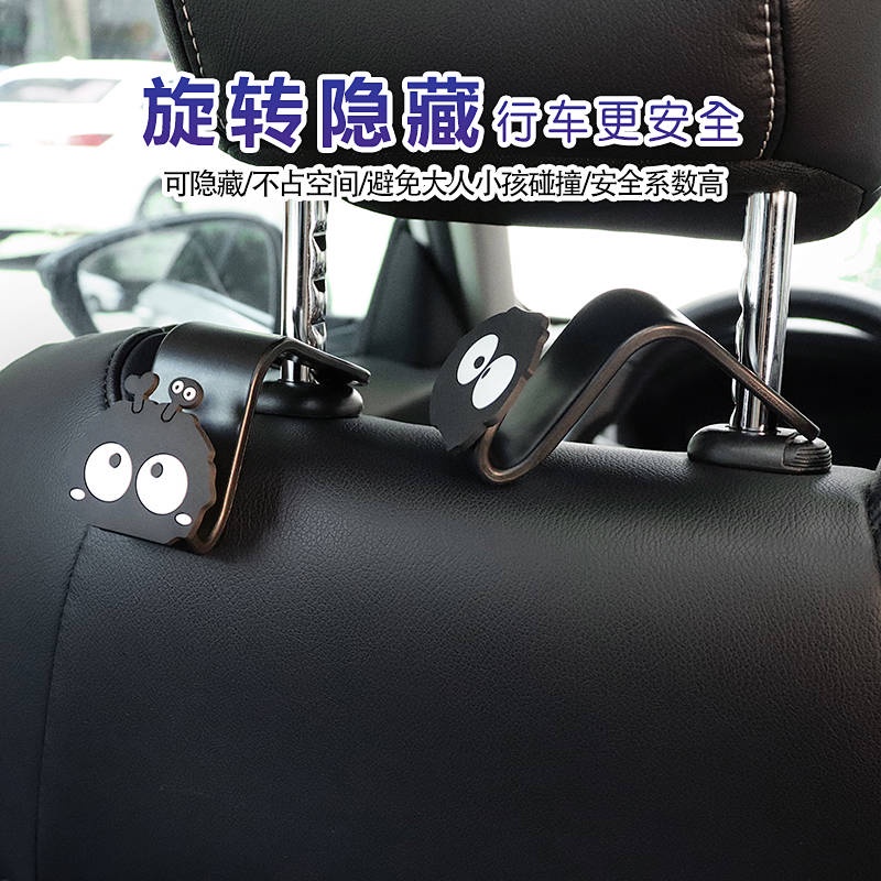Car Seat Back Hook Cartoon Cute Black Charcoal Briquette Car Seat Back Storage Hook Car Interior Ornaments LWOX