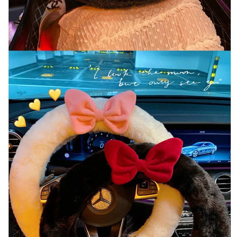 Escape Cute Princess Steering Wheel Cover Women's Bow Winter Warm Plush Decoration Car Steering Wheel Cover Four Seasons FiLU