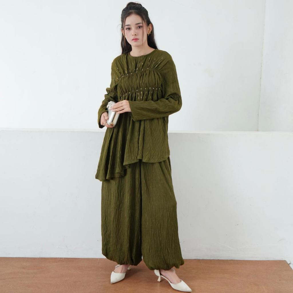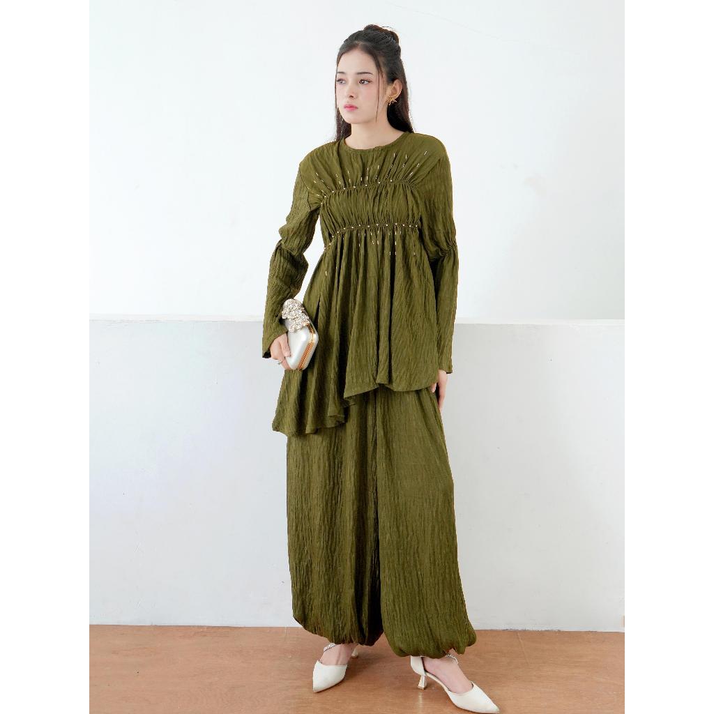 Sheered Spark Set I Shopinkae I Wrinkle Beads I Balloon Pants I Aladdin Pants I Women's Eid Suit I Raya Series