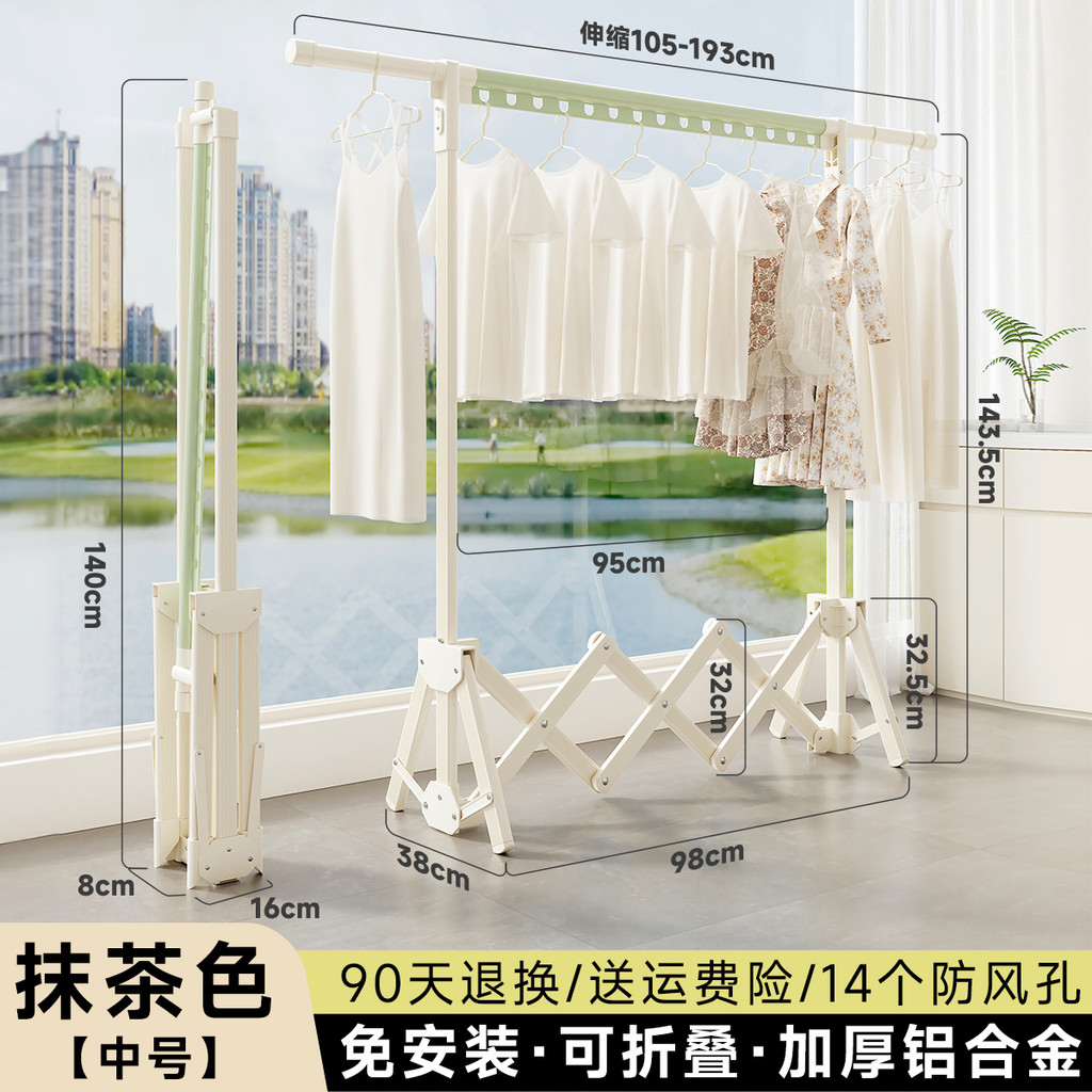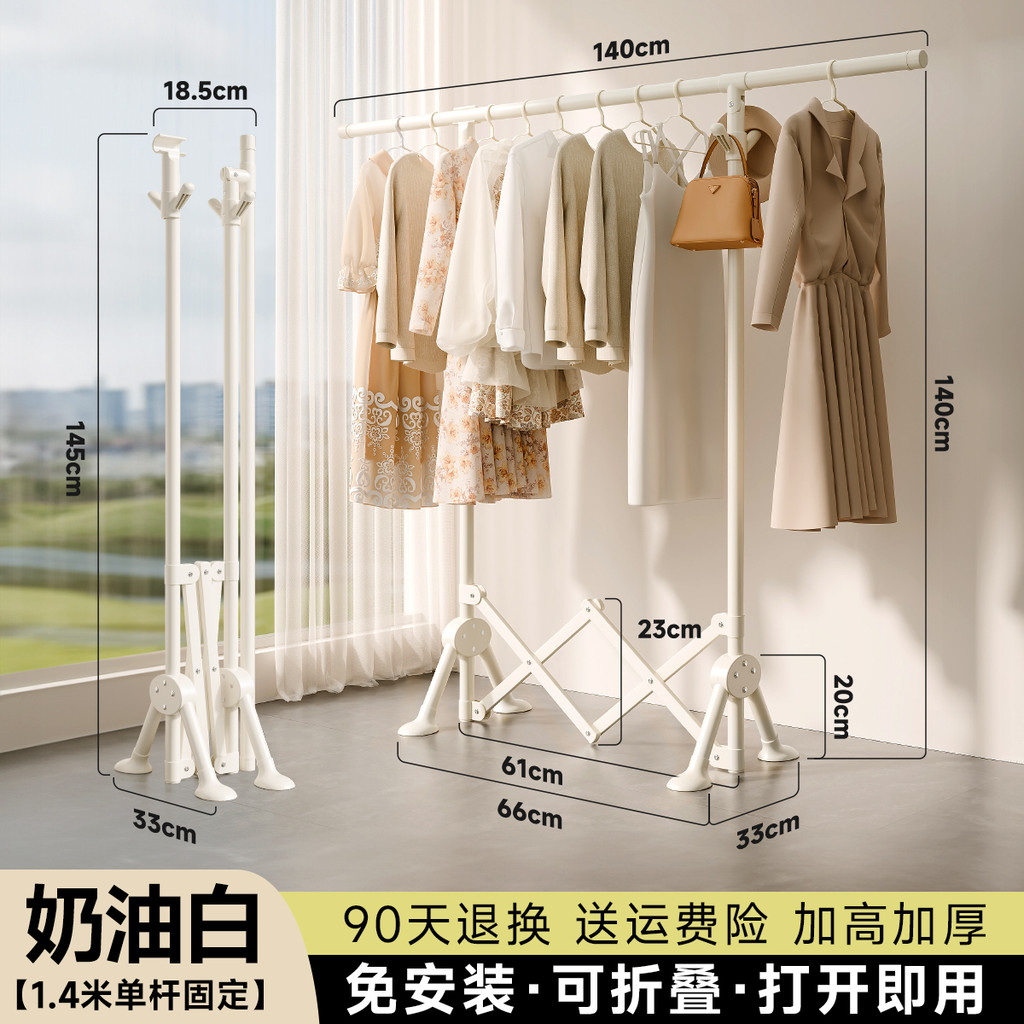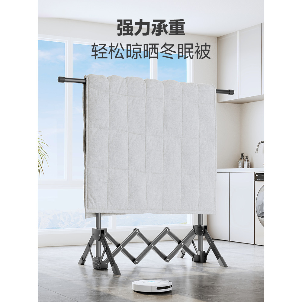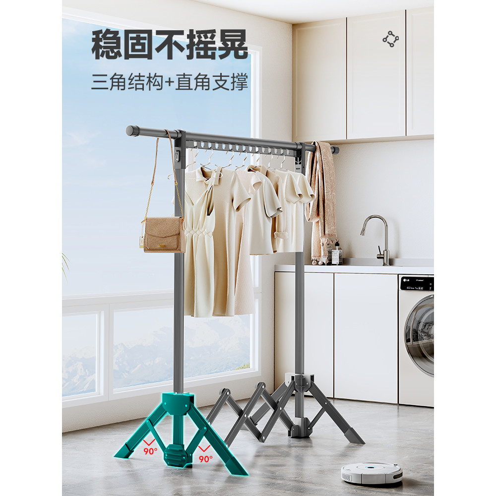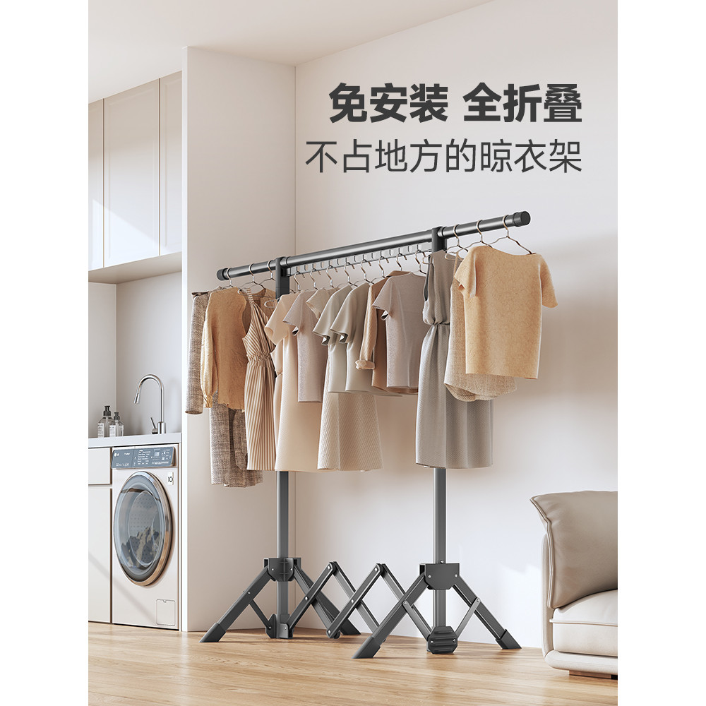 [48H Shipping] Foldable Telescopic Clothes Rack Indoor Household Floor-standing Clothes Rack Rod Small Apartment Balcony Space-saving Drying Rack