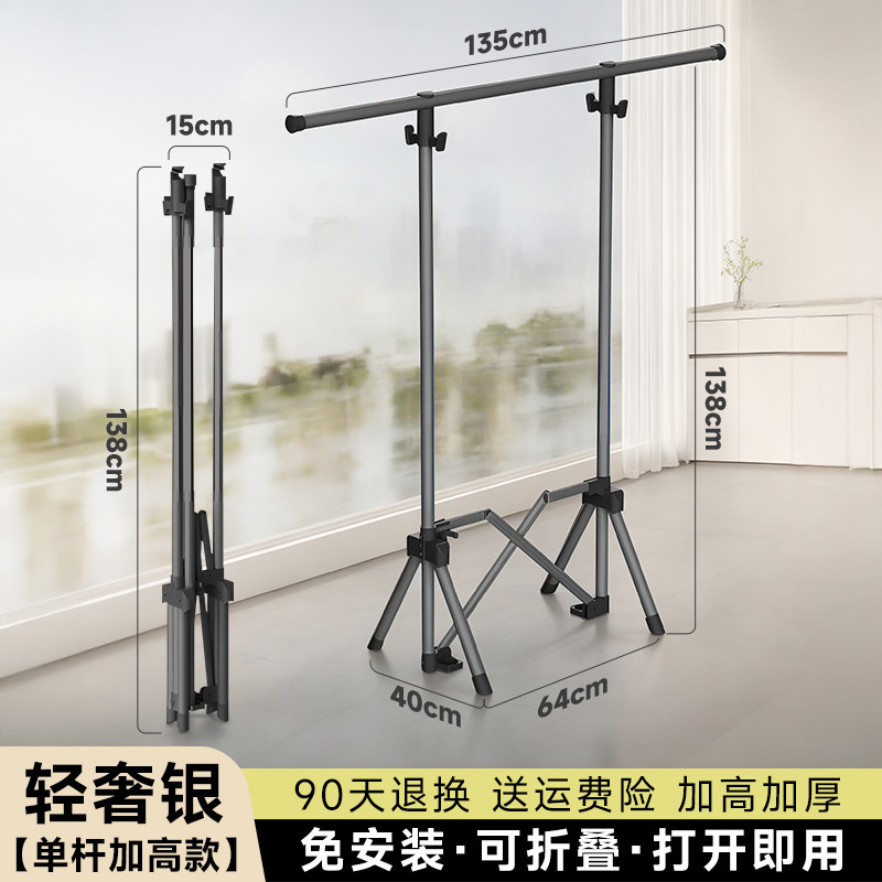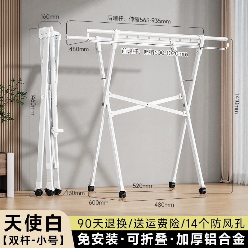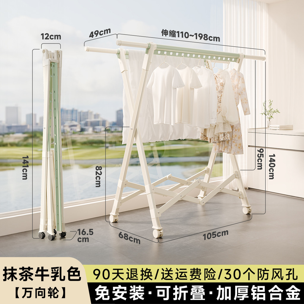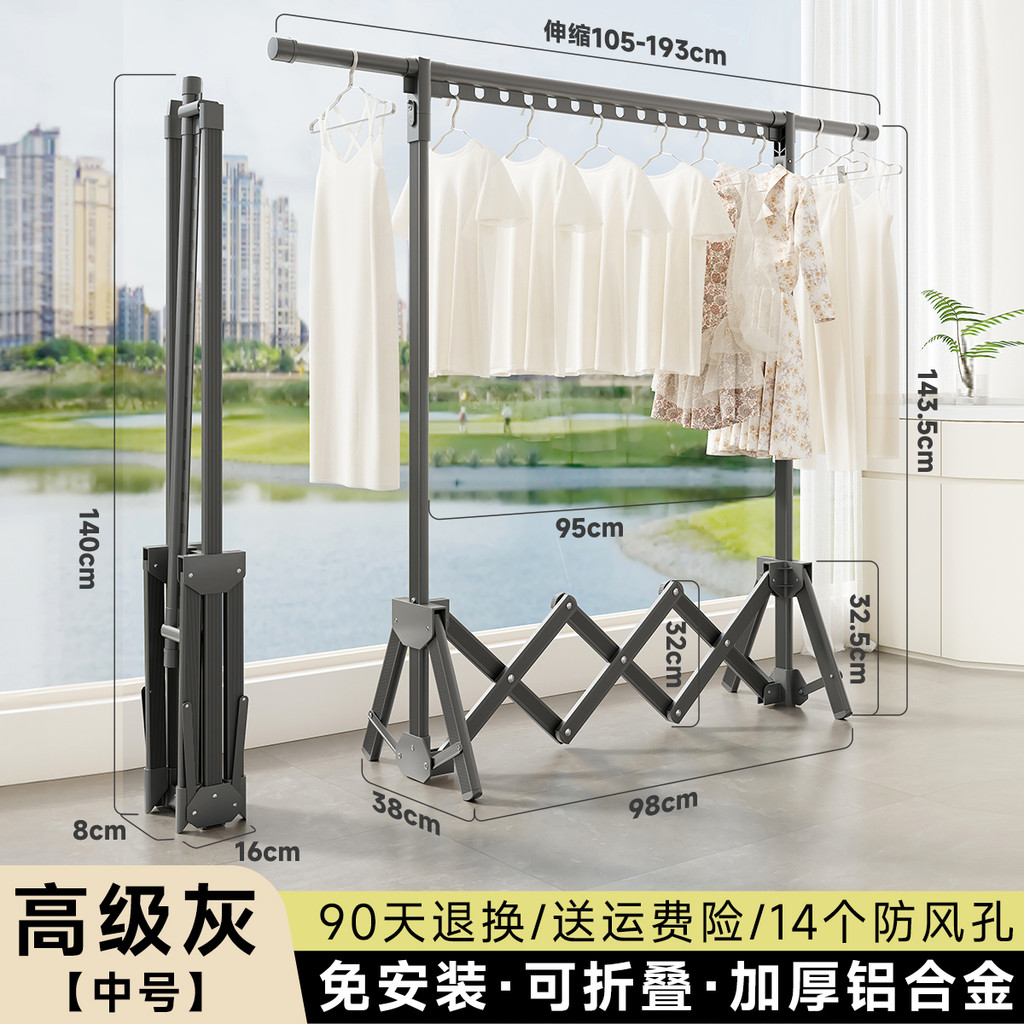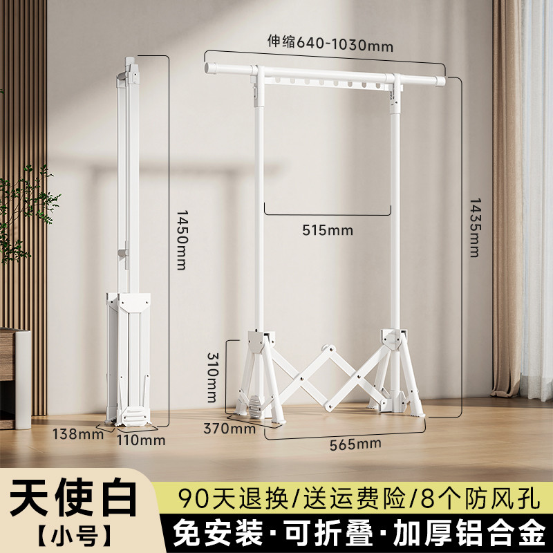 [48H Shipping] Foldable Telescopic Clothes Rack Indoor Household Floor-standing Clothes Rack Rod Small Apartment Balcony Space-saving Drying Rack