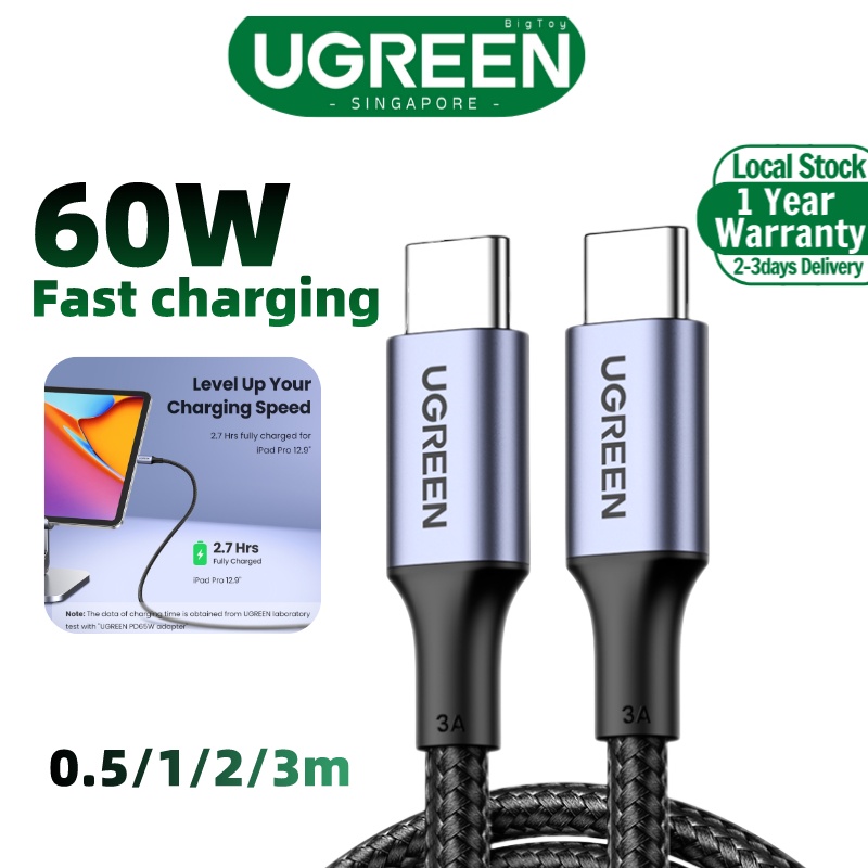 UGREEN USB C PD 60W/100W Charge Data Transfer QC4.0/3.0 Quick Charge 100W 20V 5A Nylon Bradied USB Type C Cable
