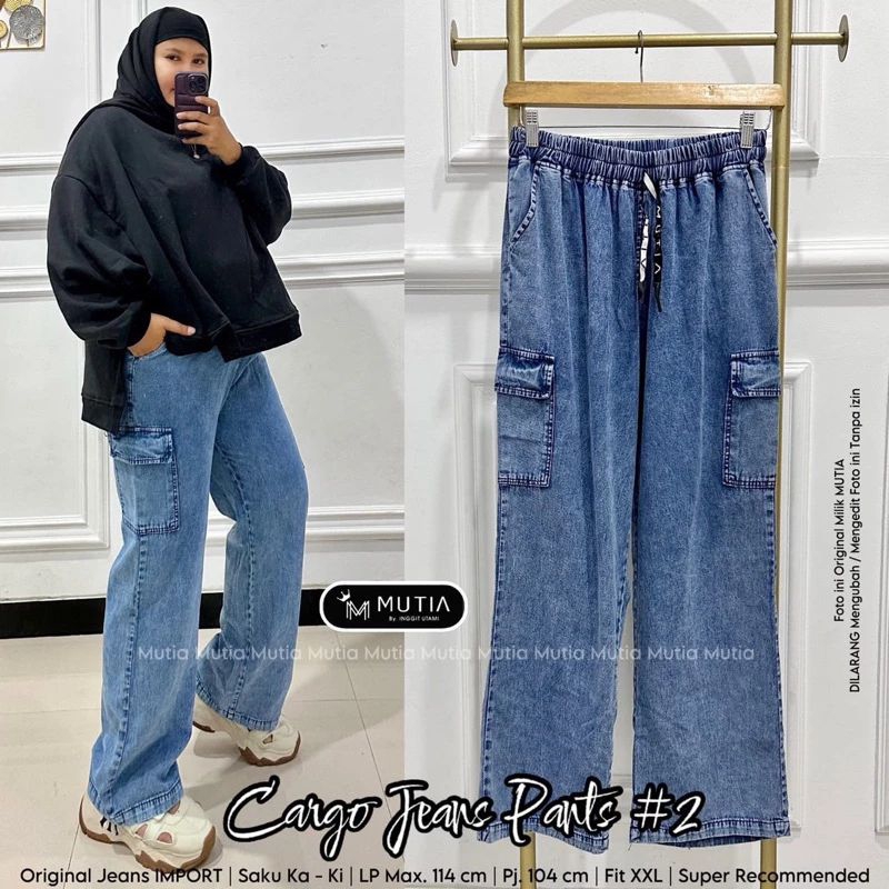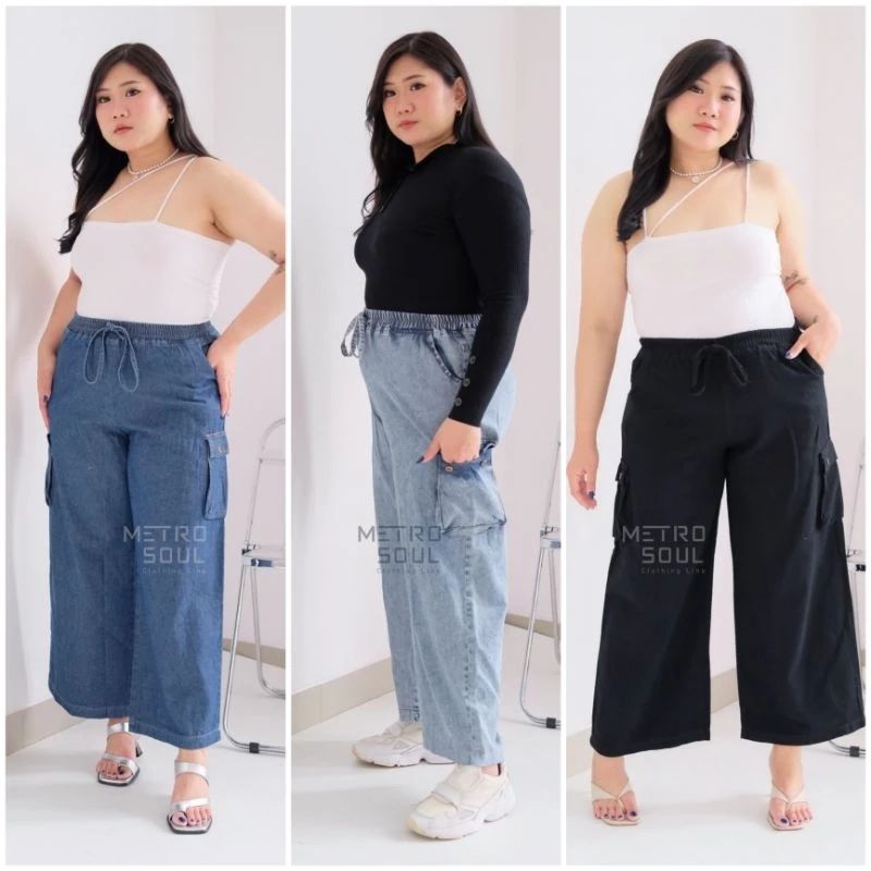 Jumbo Cargo Jeans Culottes with Waist Tie BB 45-75Kg Blue Denim Super Premium/ Jeans Pants Super Jumbo Women'sSnow Jumbo Cargo Jeans Cargo Jeans Women