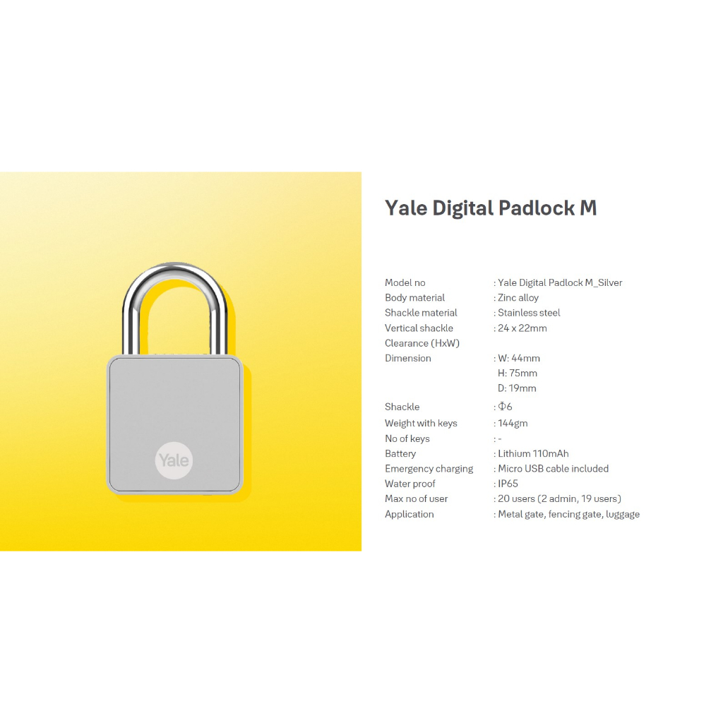 Yale Digital Padlock M with Fingerprint