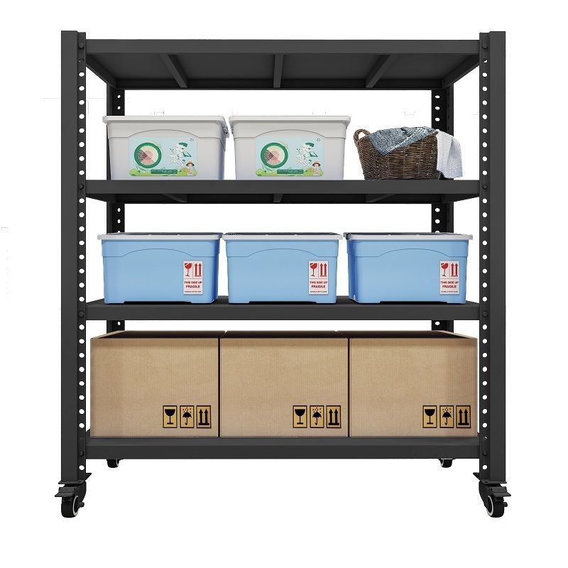 [48H Shipping] Movable Storage Rack Warehouse Shelf with Wheels, Three-Sided Mesh, Multi-Layer Adjustable Commercial Iron Shelf