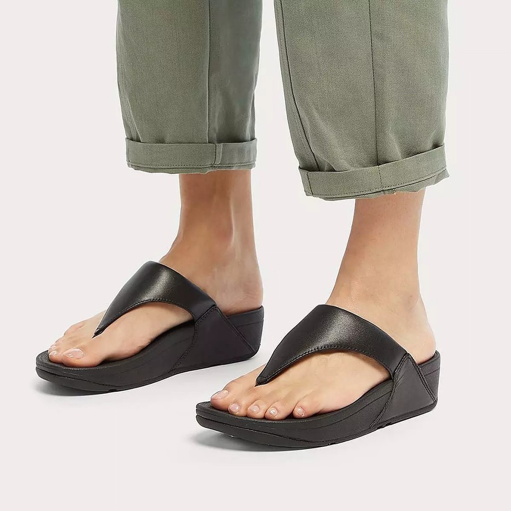 FitFlop LULU Women's Leather Toepost Sandals- Black (I88-001)