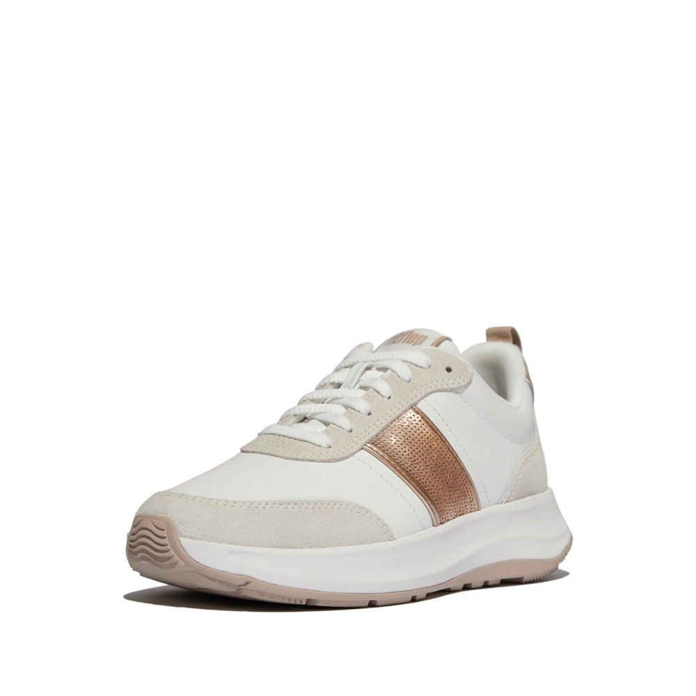 FitFlop x Song Hye Kyo F-MODE Women's Flow Sequin Suede/Leather Flatform Sneakers - Urban White/Classic Beige (E1Z-B44)