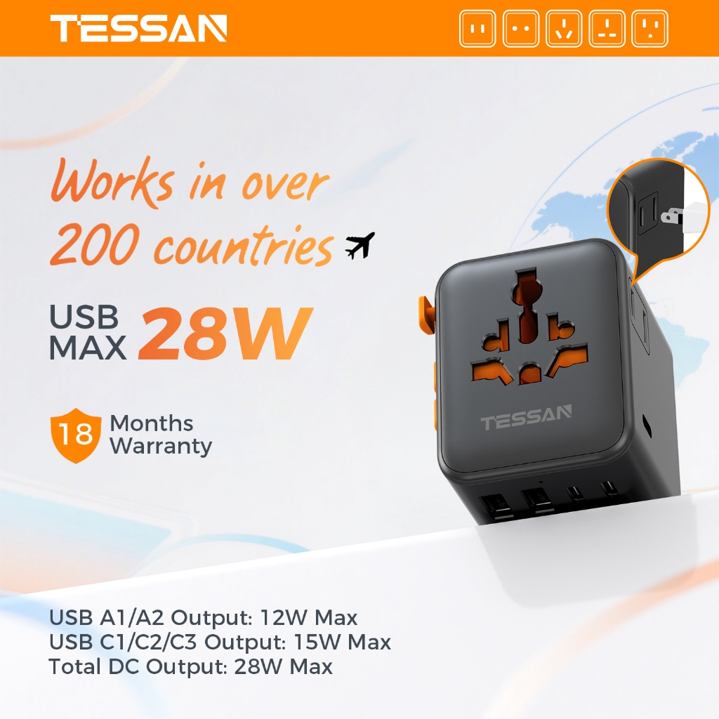 TESSAN Universal Travel Adaptor Plug with 2 USB C Ports Universal Power Adapter Wall Charger