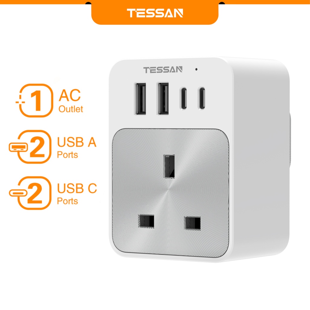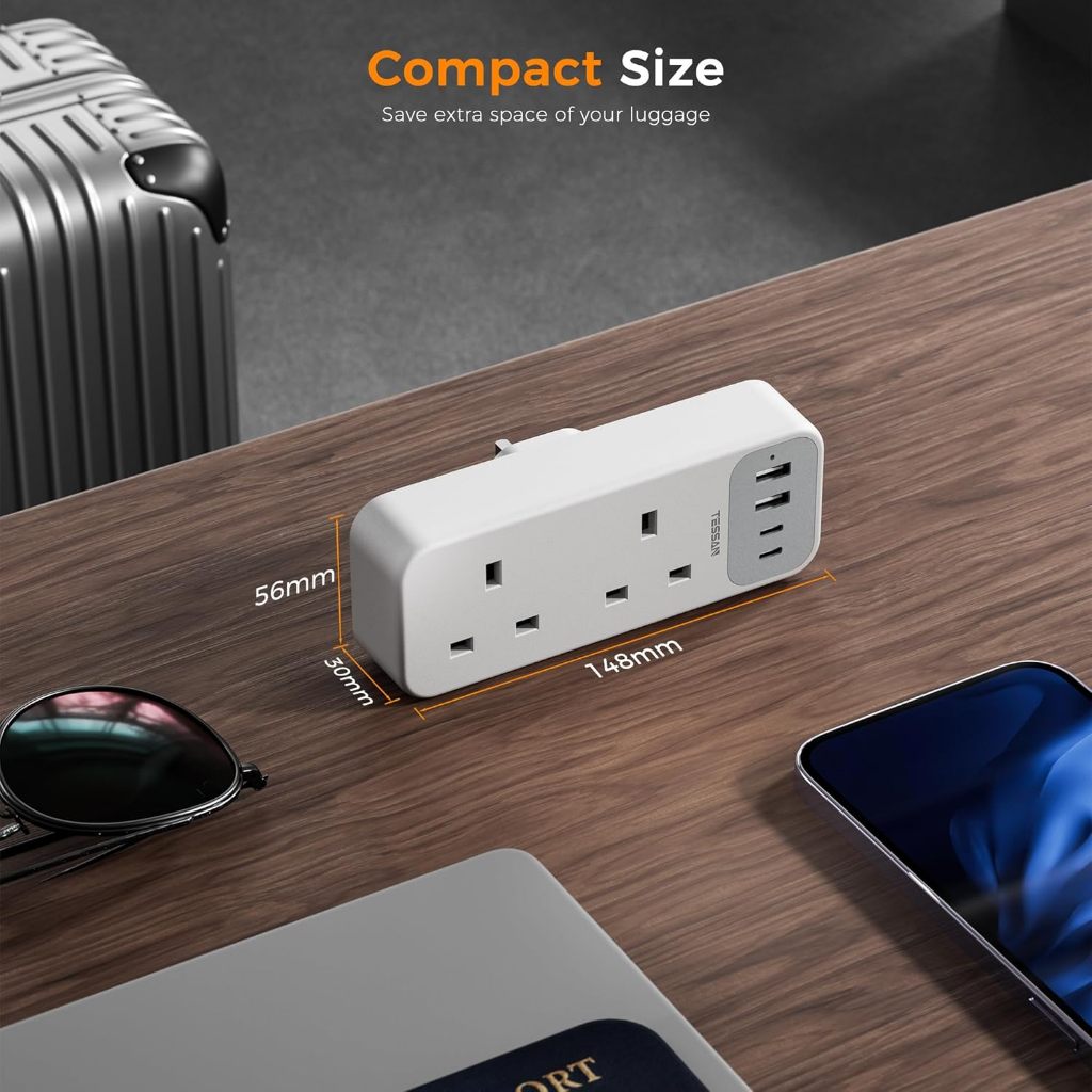 TESSAN Multi Plug Extension with USB C Extension Plug Adapter Power Socket Charger Bundle Set