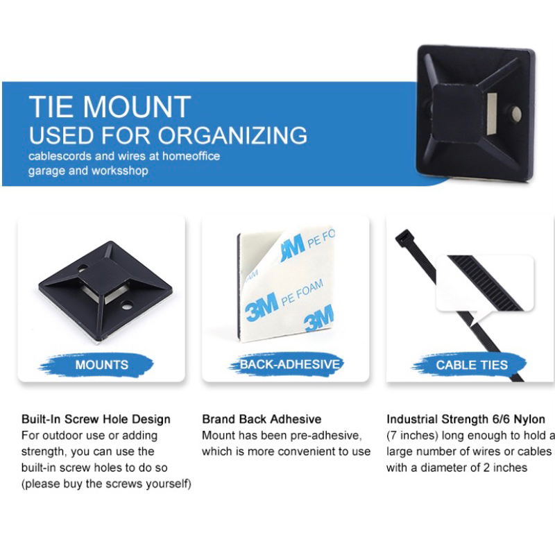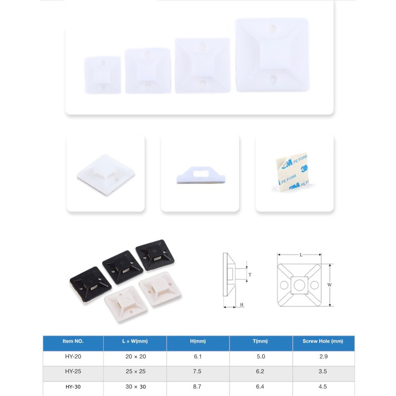 Cable Tie Mount Base 3M Foam Self Adhesive Wire Tie Mount - 20mm/25mm/30mm(White/Black)