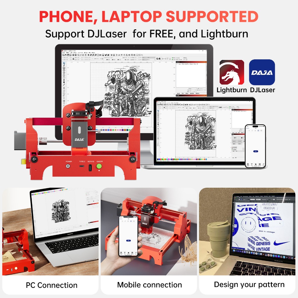 DAJA A7 MINI 5W Commercial Laser Engraving Machine for Wood, Plastic, Food, Custom Pattern LOGO, Desktop Laser Printer Engraving Spray Paint Metal Objects